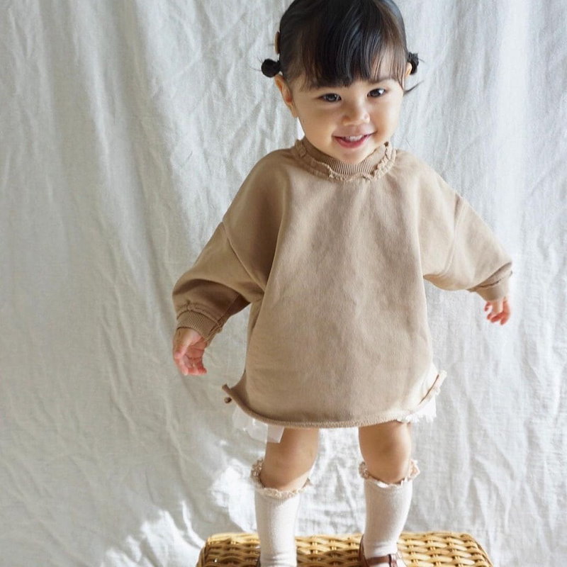 親子ペア Tシャツ レディース秋 冬 無地 長袖 Tシャツ 綿 オールインワン 子供服 スウェットトップス 新作秋 冬 長袖レースレースかわいい ベビー服長袖 可愛い