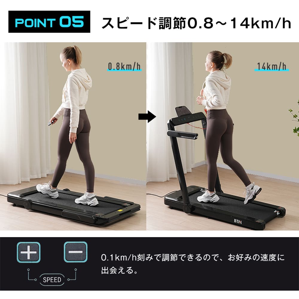 【スピード調節0.8-14km/h】0.1km/h刻みで調節できるので、お好みの速度に出会える。