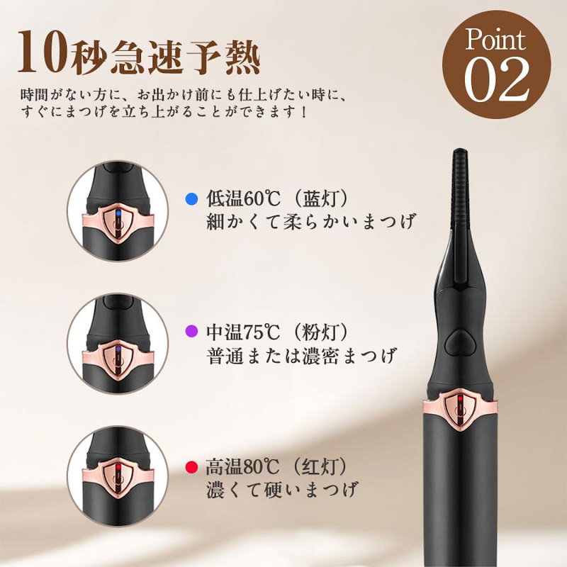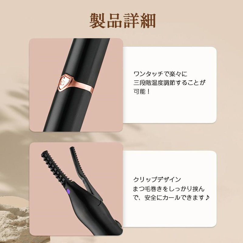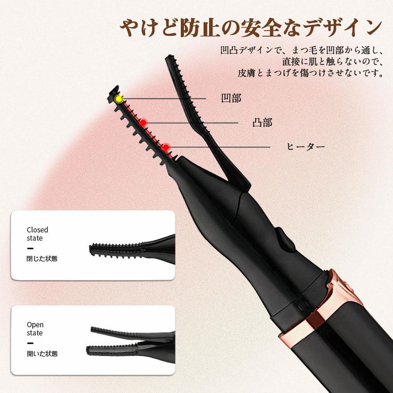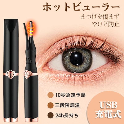 ホットビューラー グリップ式グリップ USB充電式 まつげ ビューラー ホット まつ毛カーラー 下まつげ 2in1 クリップ コテ型 コーム型 アイラッシュカーラー 上向き