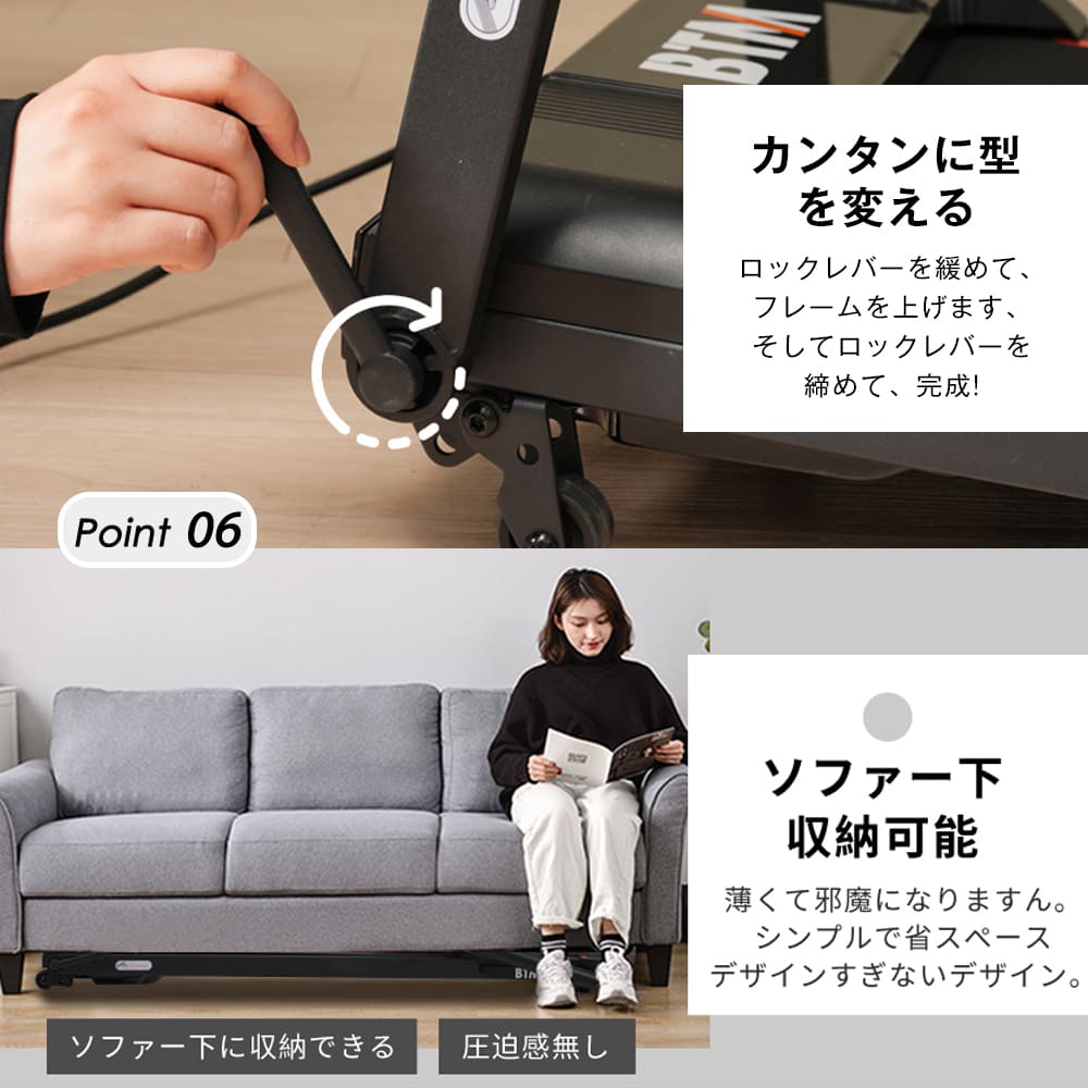 【超静音&衝撃吸収システム】外に出ないで静かに散歩する。5層ベルト ソフトドロップシステムで設計されているため、床を傷つける心配はありません。左右にはゴム制振装置がついています。衝撃を吸収し、騒音を減らすことができます。