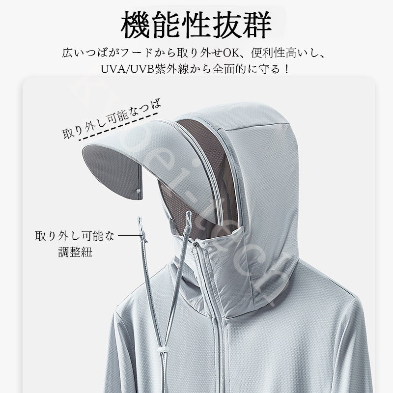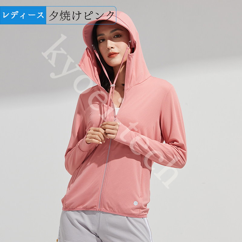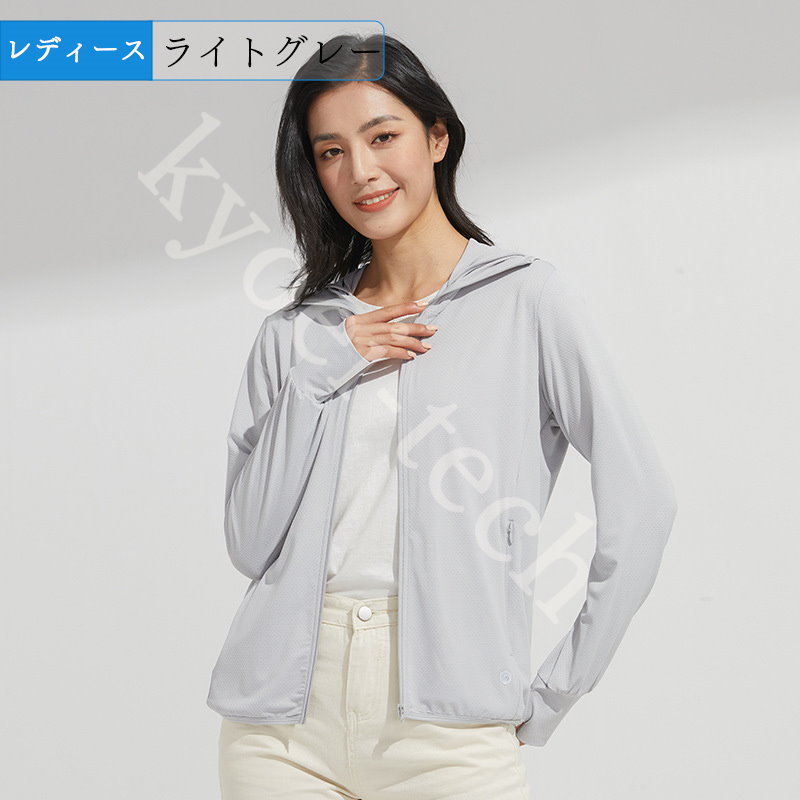 UVパーカー冷感 -7℃ M-5XL レディース 長袖 ラッシュガード 遮光 コーディング つば UVカット アウターメッシュ 通気口 指穴 取り外し日焼け防止服 大きいサイズ 体型カバー 薄手 吸汗