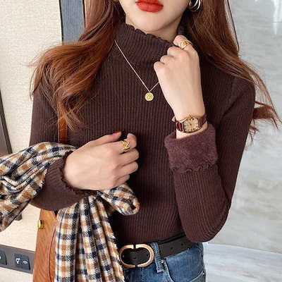 裏起毛3TYPE ニットセーター保温 暖かい 上質 リブ ニット トップス レディース タイト シルエット ストレッチ カットソー 無地 秋冬 トップス