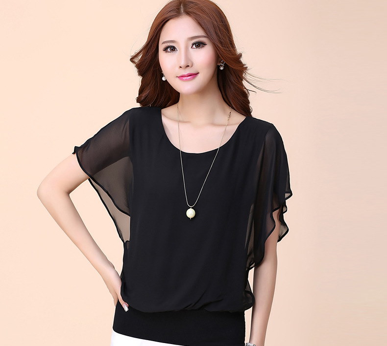 フリル袖 半袖 シフォン ブラウス シャツ 5colorチュニック 無地レース フリル袖カットソー レース襟 シンプル クルーネック Uネック レディース 春 夏 トップス フォーマル 薄手 シースル