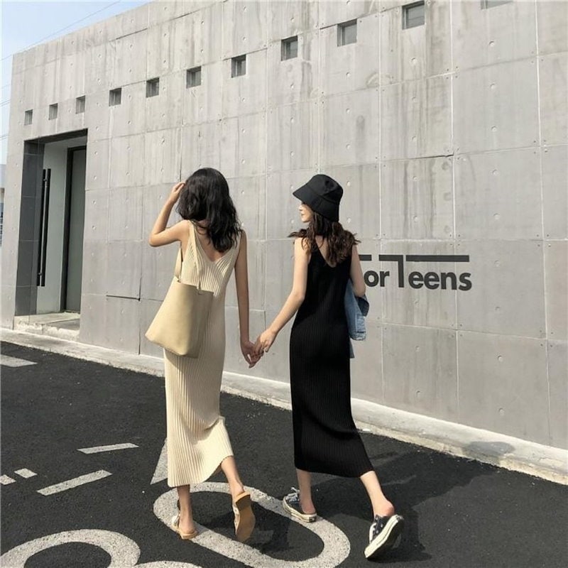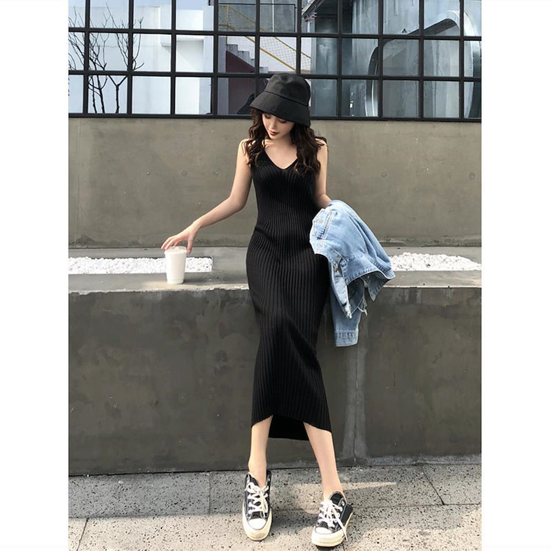 夏のキャミソールワンピース ウエストシェイプ ロング スリムフィット 学生用ワンピース 涼しい ルームウェア