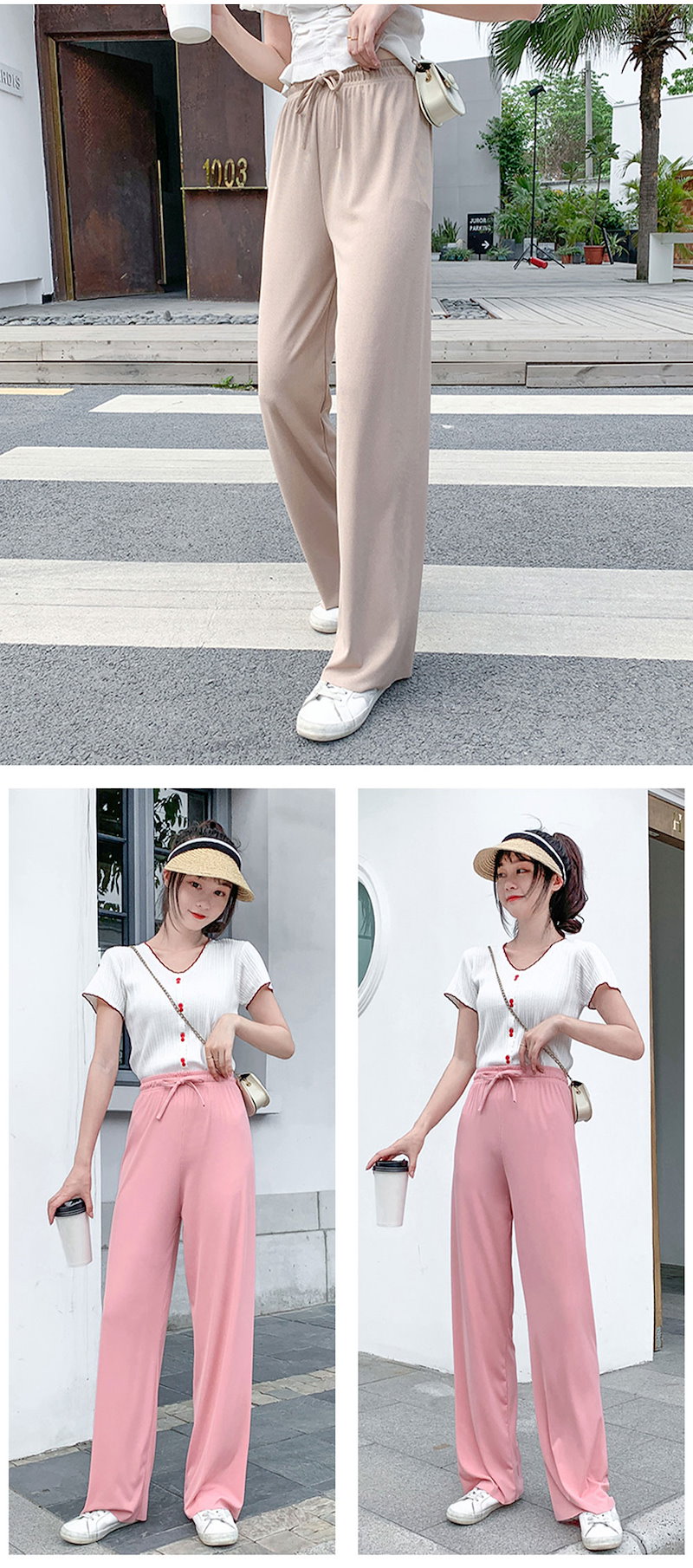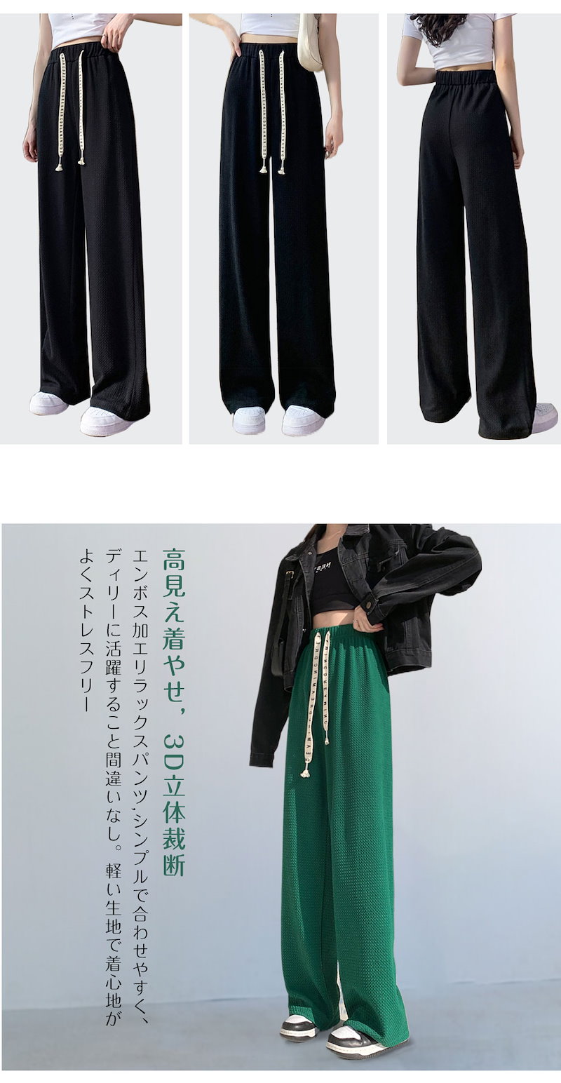 2枚購入で100円OFF 選べる2タイプ 冷感新作 2024春新作ワイドパンツ4カラーレディース ガウチョパンツ ロングパンツ 長ズボン 着痩せ ゆったり 美