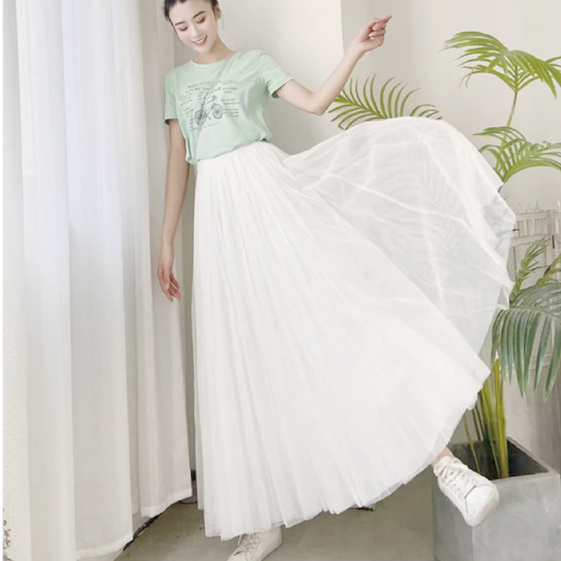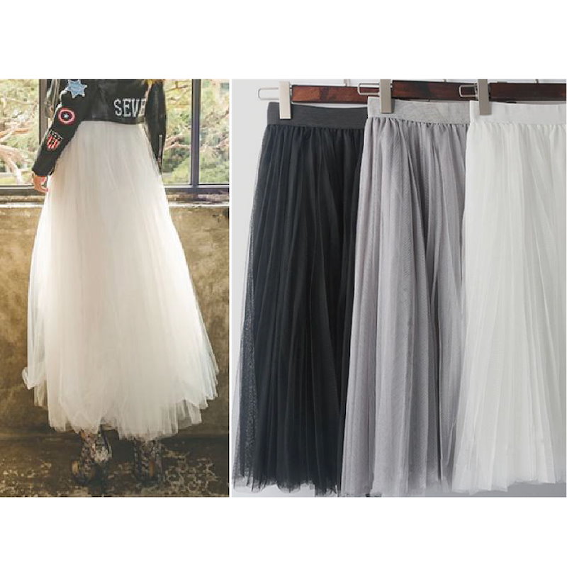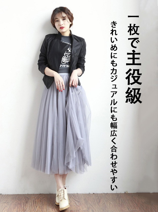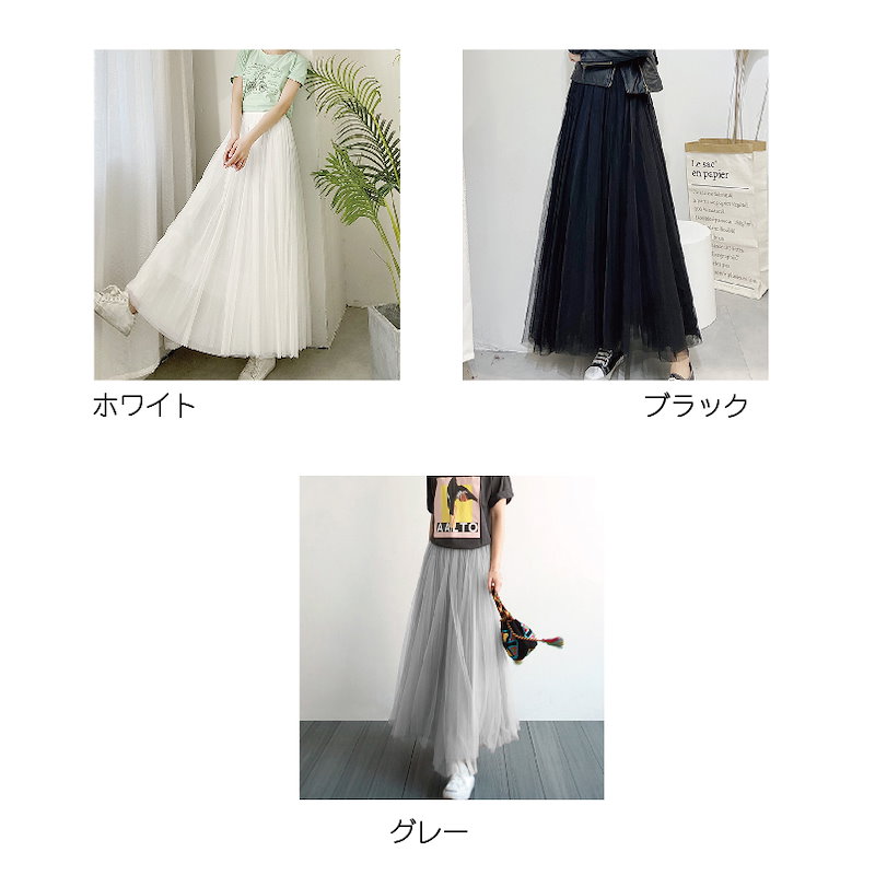 チュールスカート ロング スカート 選べる3色 プリーツスカート 春パステルカラー シンプル無地ロング丈 フレアボトムス 春夏 裏地付き 無地