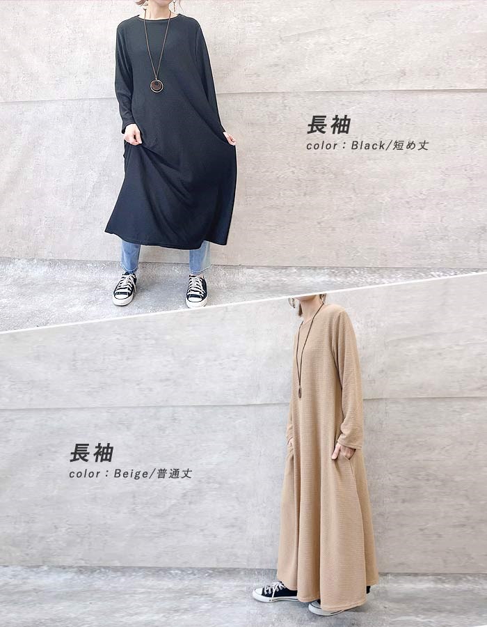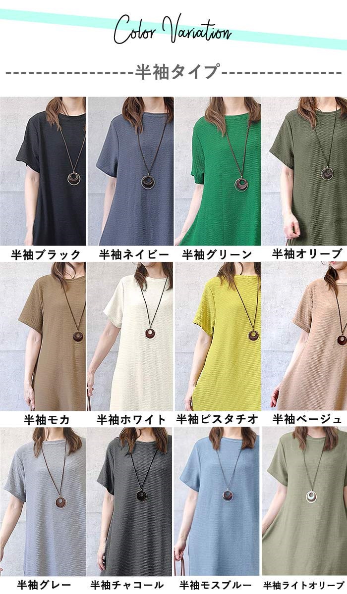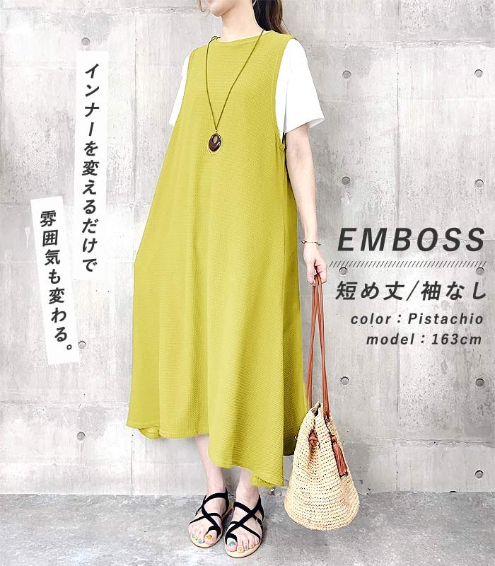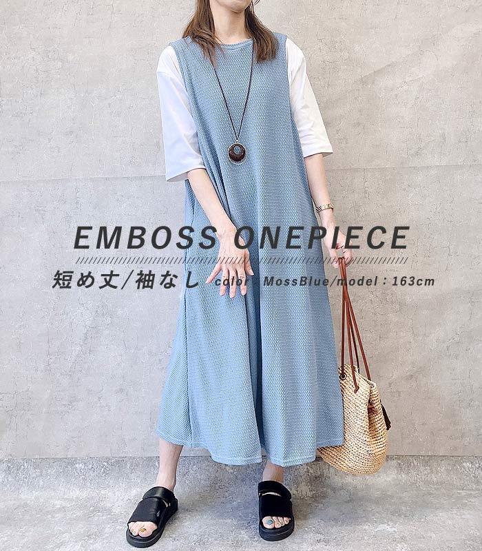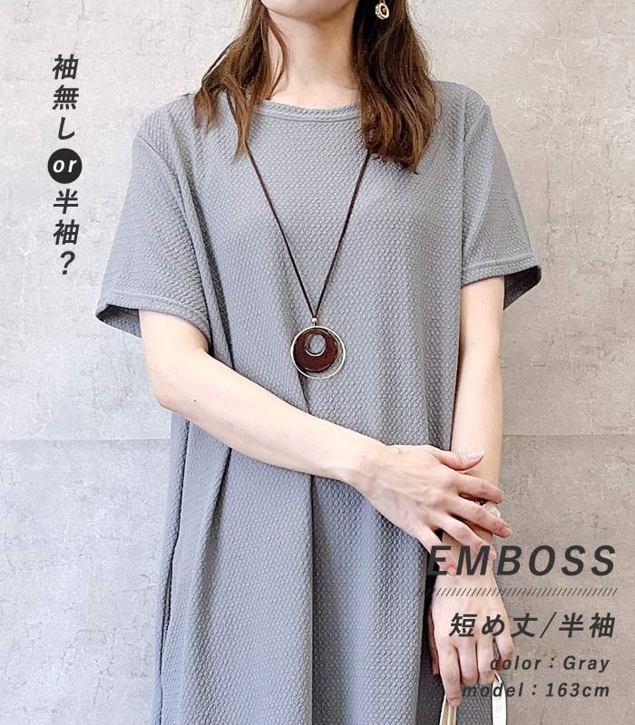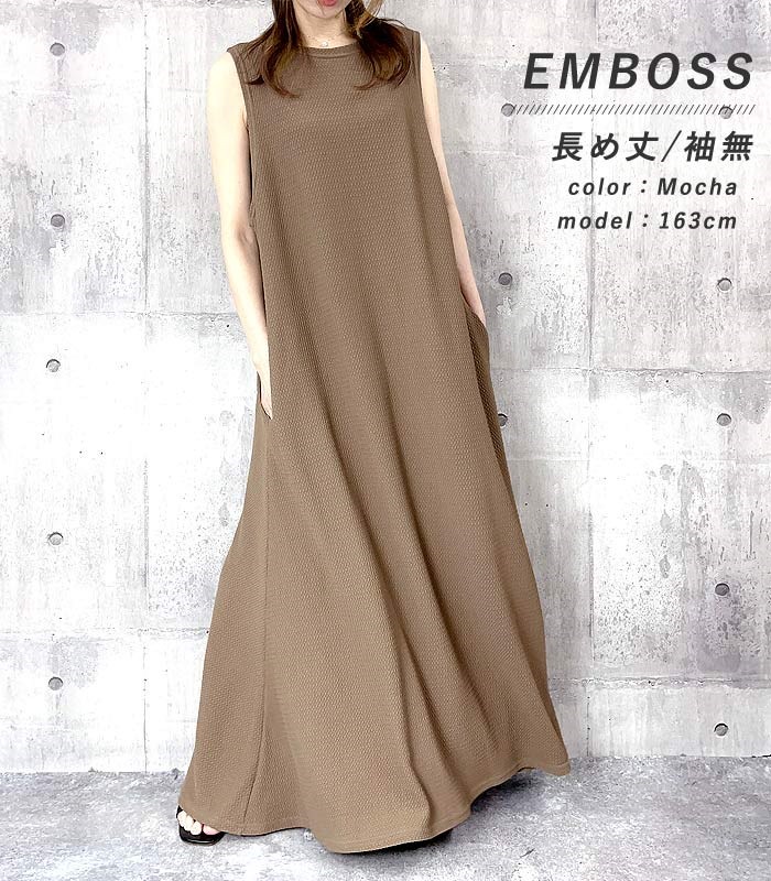 ワンピース ワンピ ノースリーブ 半袖長袖レディース エンボス ロング丈 マキシ丈 楽ちん 春 夏 秋 [郵3]^w700^
