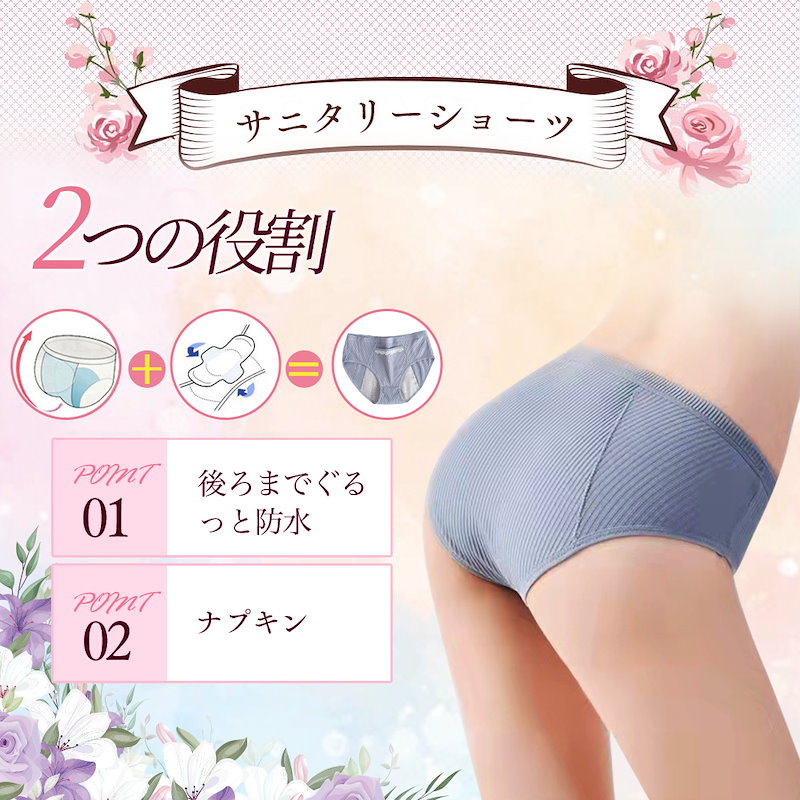[現役女性医師監修]雑誌掲載 サニタリーショーツ 4枚セット 深履き 生理用ショーツ 吸収 吸水ショーツ 漏れ防止 綿100% ショーツ レディース ナイト用 多い日 漏れない 生理用パンツ