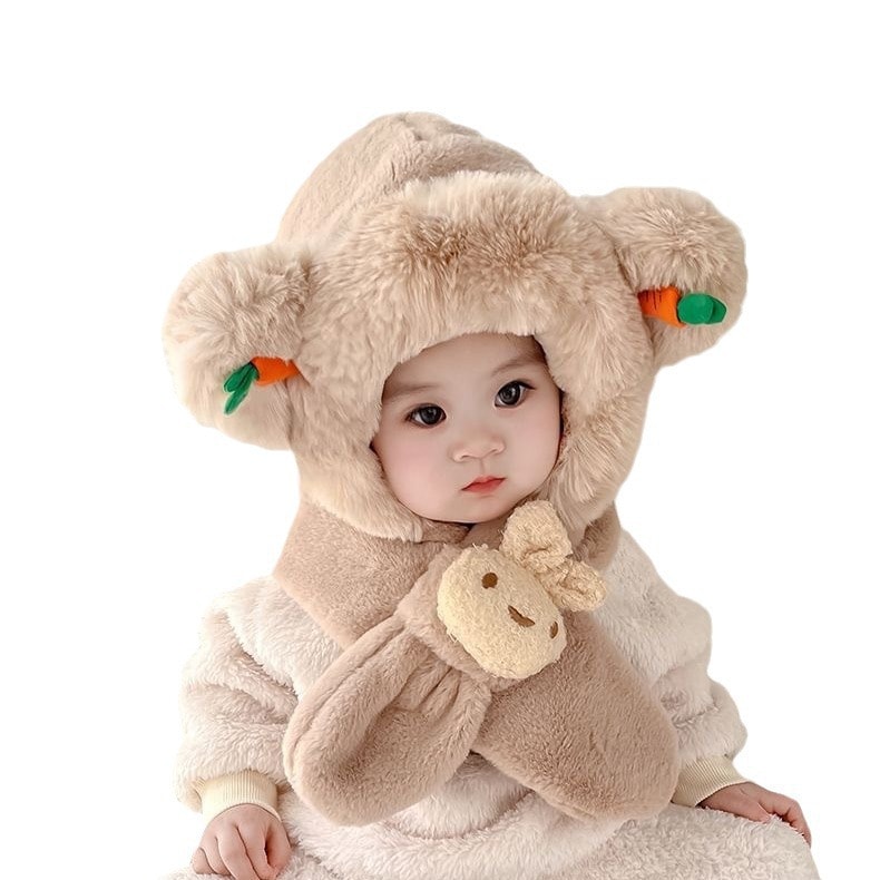 赤ちゃん帽子マフラー一体ネックキャップ赤ちゃん秋冬かわいい超萌え男女子供冬子供耳保護帽 帽子