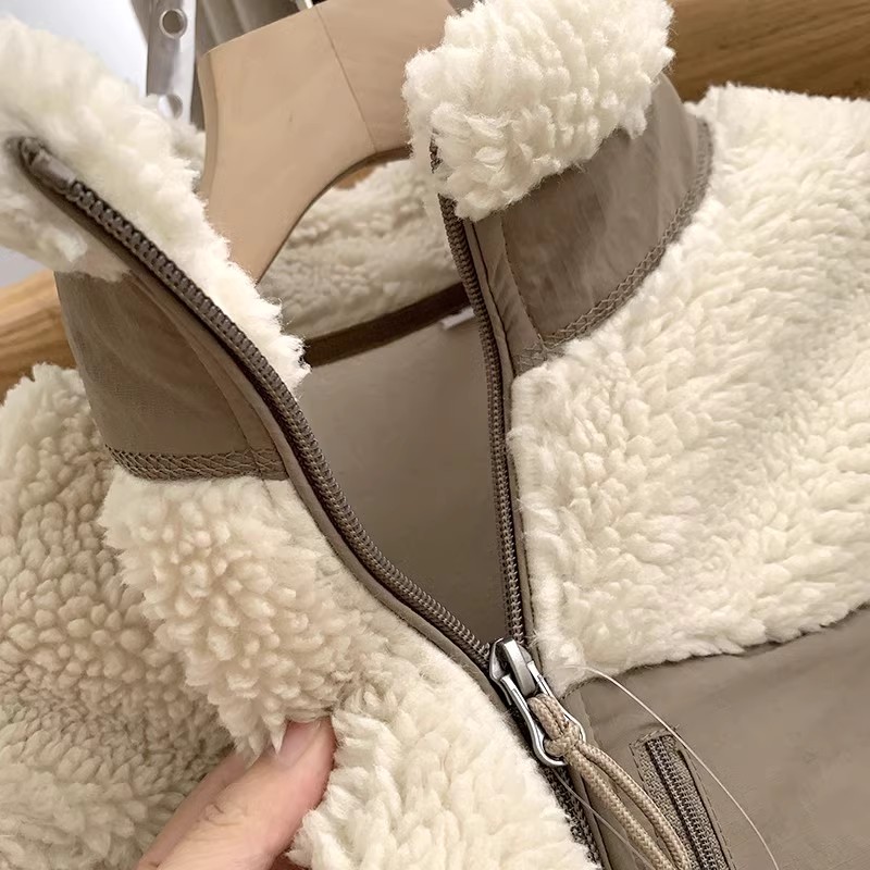 多色大集合 コート パーカー ボアジャケットボアブルゾン ジャケット パーカー カップルモデル秋と冬の新しいジップ緩い防風ポケット襟暖かいラムウール ジャケット レディース