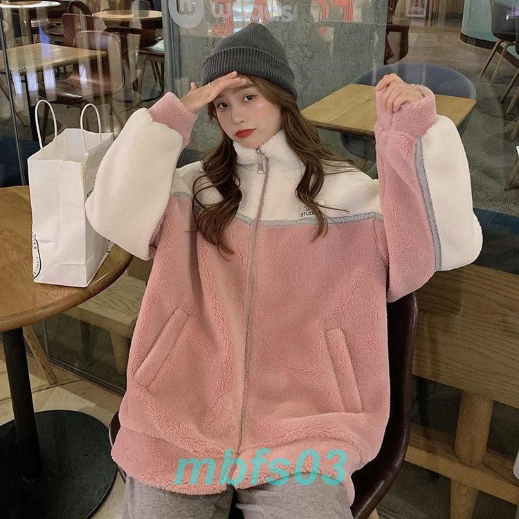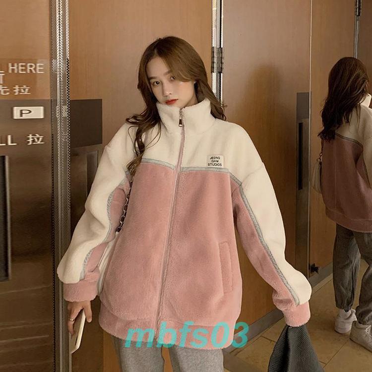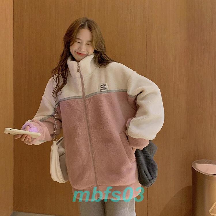 フリースジャケット レディース ボアジャケット アウター 立ち襟 もこもこ 無地 シンプル 厚手 暖か 防寒 秋冬 通勤 あったか ショート丈