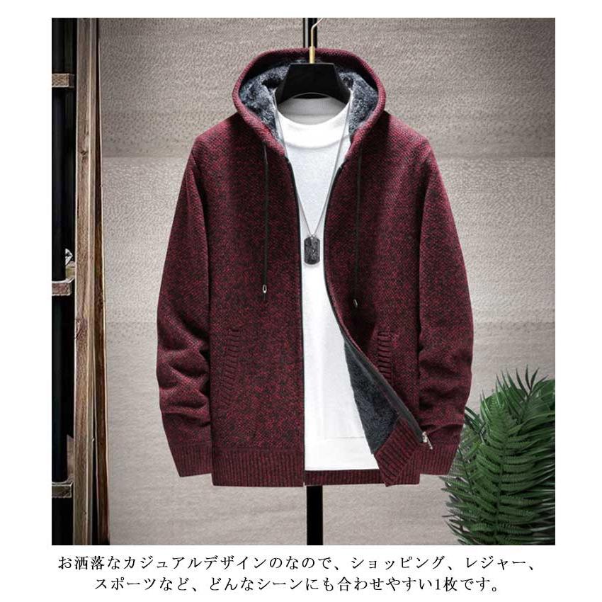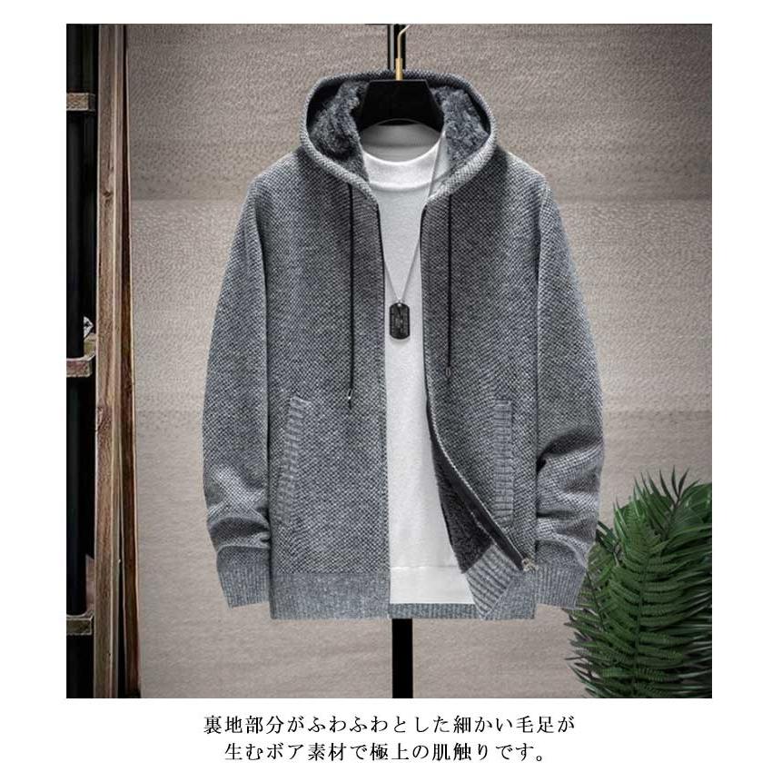 ニットカーディガン メンズ カーディガン ロングパーカー 裏起毛 コート ブルゾン ジャケット アウター ロング丈 上着 ニットセーター その他