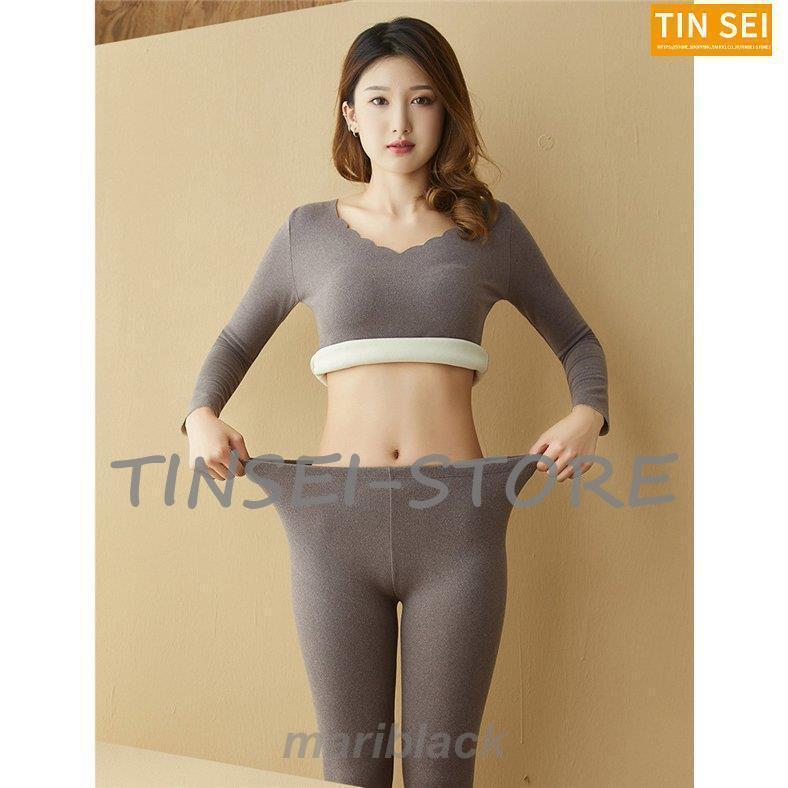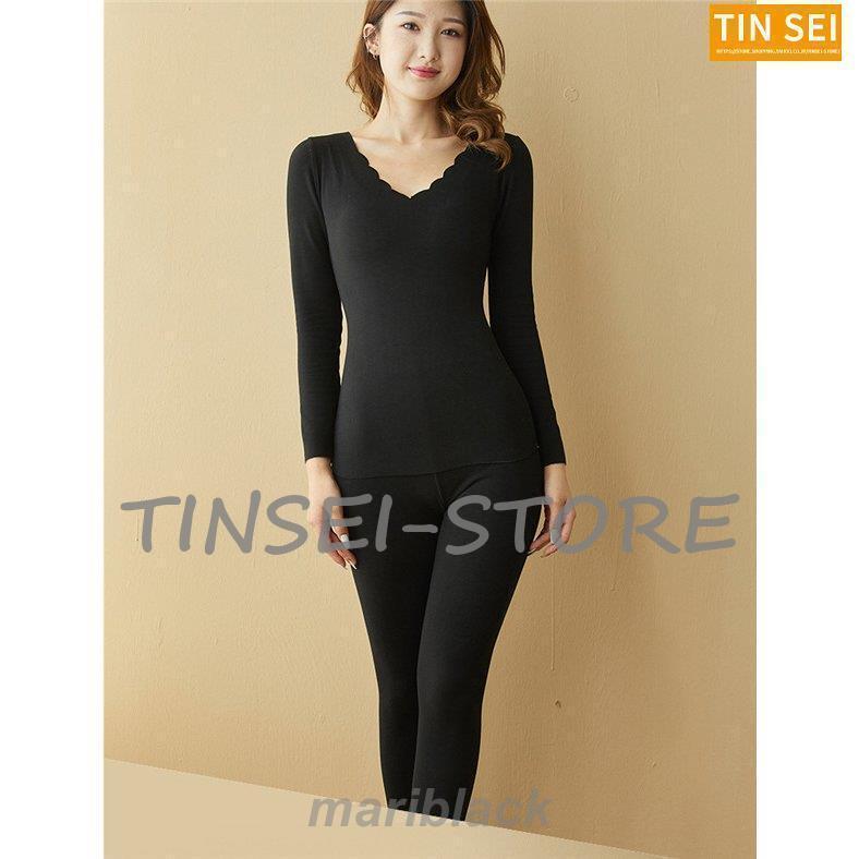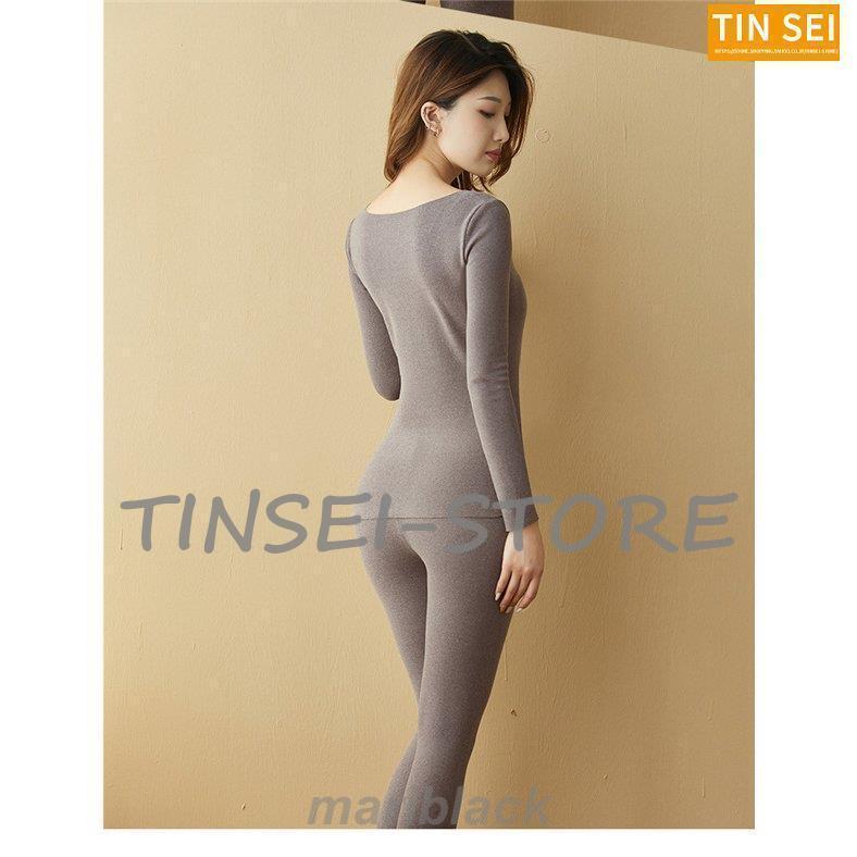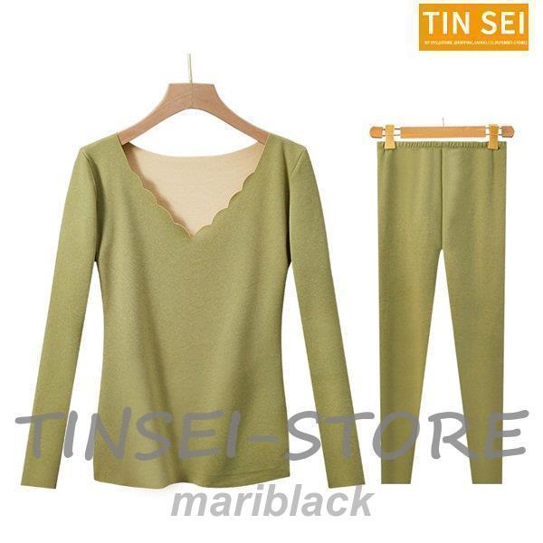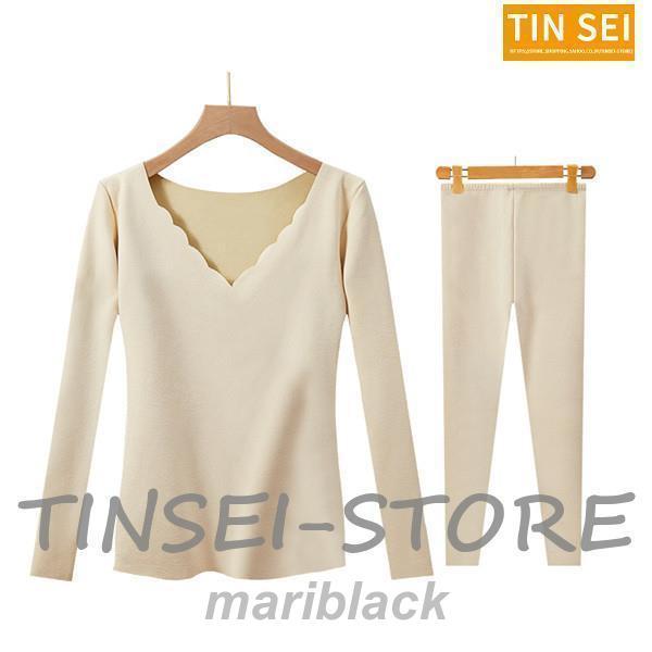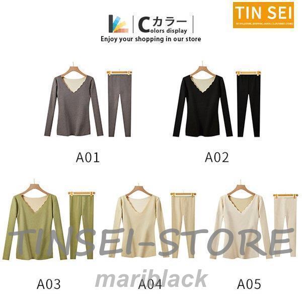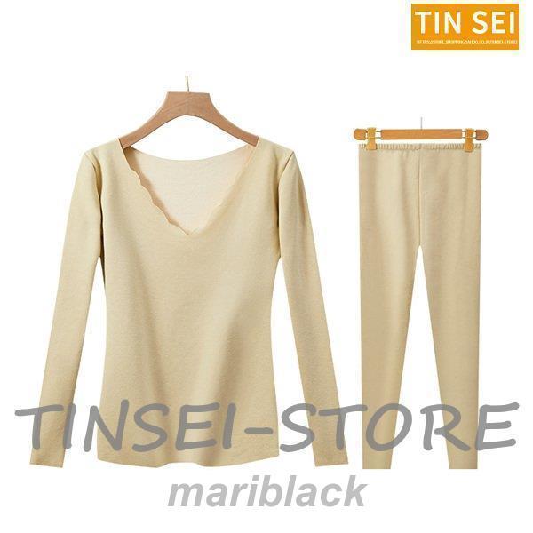 ヒートテック 上下セット 発熱素材 ヒートインナー ランドネック 長袖 下着 薄手 レディース 防寒インナー 保温 シンプル 肌着 防寒 セットアップ