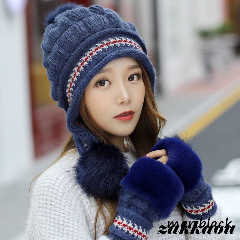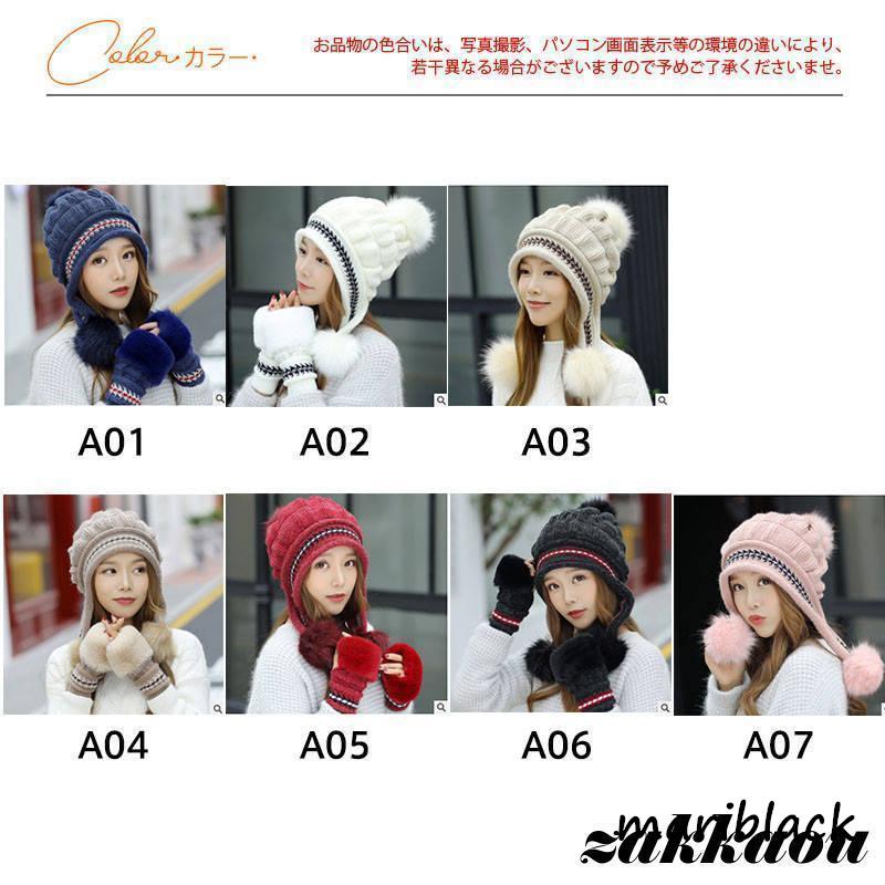ニット帽 レディース 帽子 ニット 耳あて付き 2点セット 手袋 小顔効果 防寒 キャップ カジュアル 裏起毛 バイク もこもこ 通学 可愛い