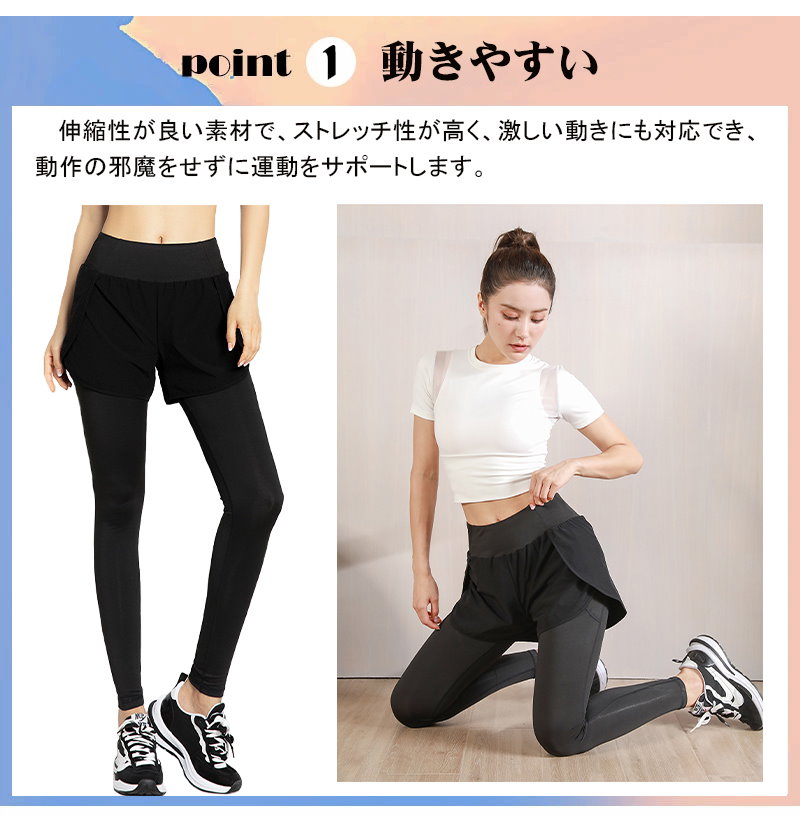 ヨガパンツ ショートパンツ 一体型 レギンス レディース 9分丈 スパッツ 吸汗速乾 ハイウエスト ヨガウェア ストレッチ パンツ付きレギンス スポーツウェア ランニング トレーニング ウォーキング