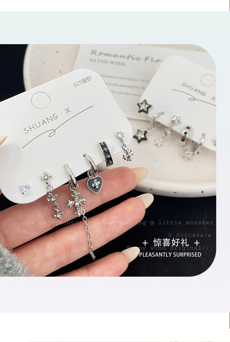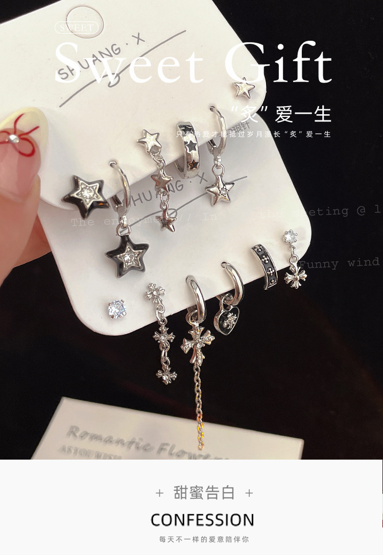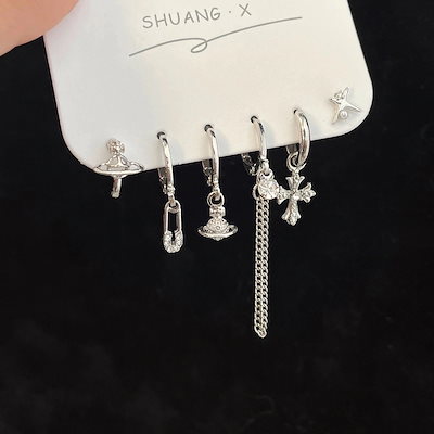 ピアスペンタグラムピアス スターピアス バックルセット ニッチピアス クロスピアス スタッドピアス ピアス