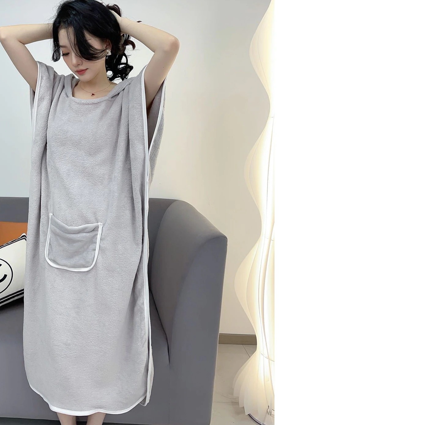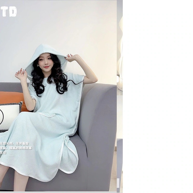 バスタオルホームウェアラブルコーリースフード付きマントバスローブ吸水ウェアニーハイかわいいバススカート女性 バスタオル