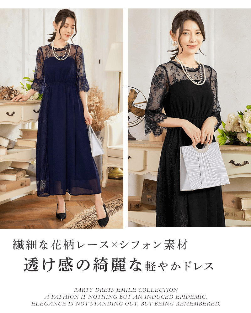 パーティードレス 結婚式 お呼ばれ ロング丈 20代 30代 40代 個性的 マキシ丈 大きいサイズ パーティー ワンピース お呼ばれドレス ドレス 入学式 卒業式 袖あり emile0193