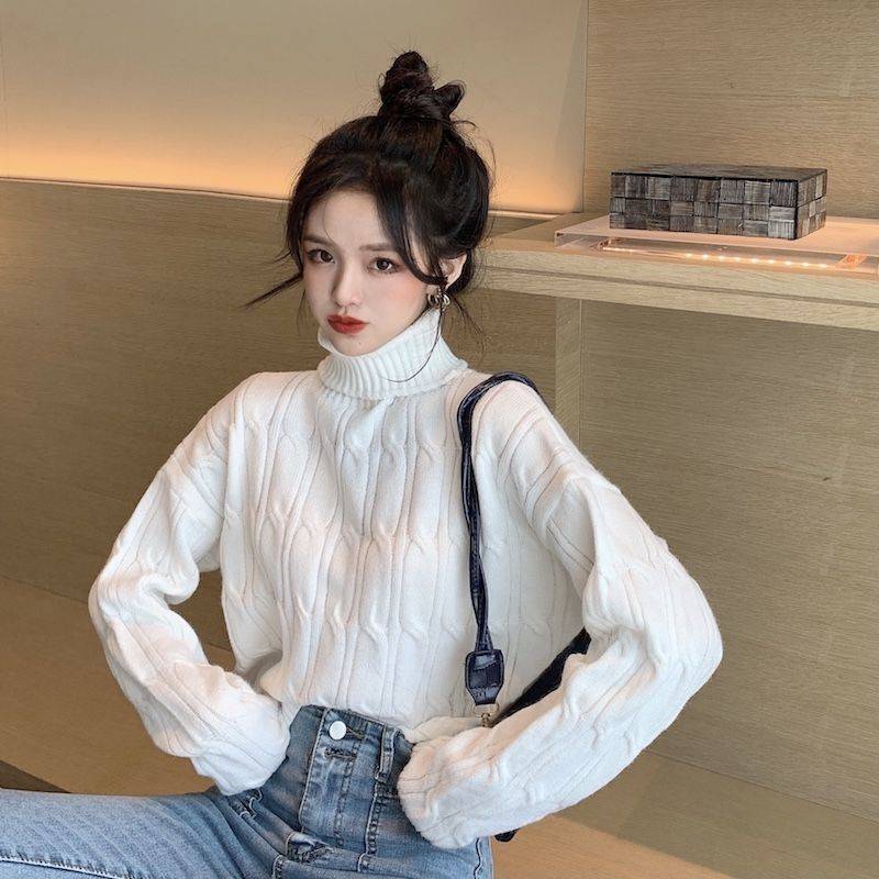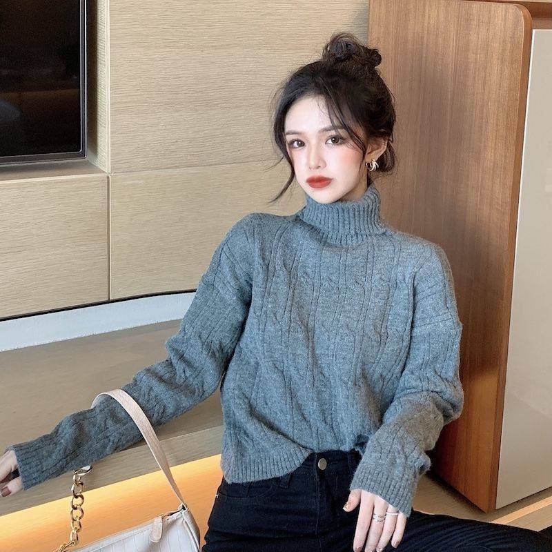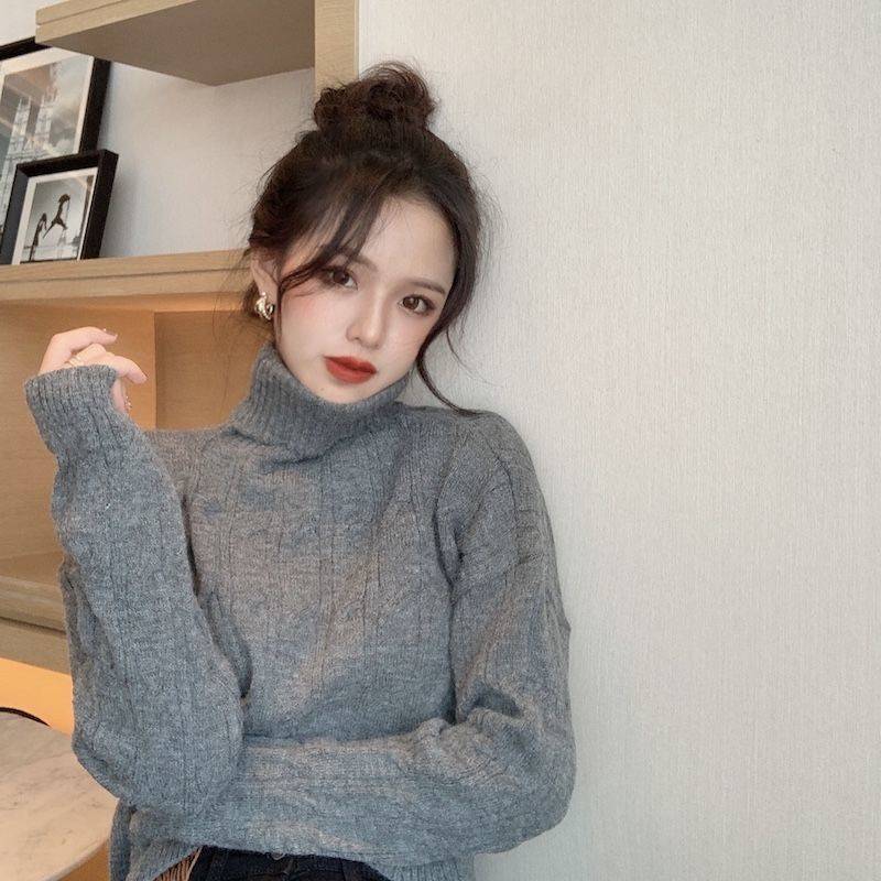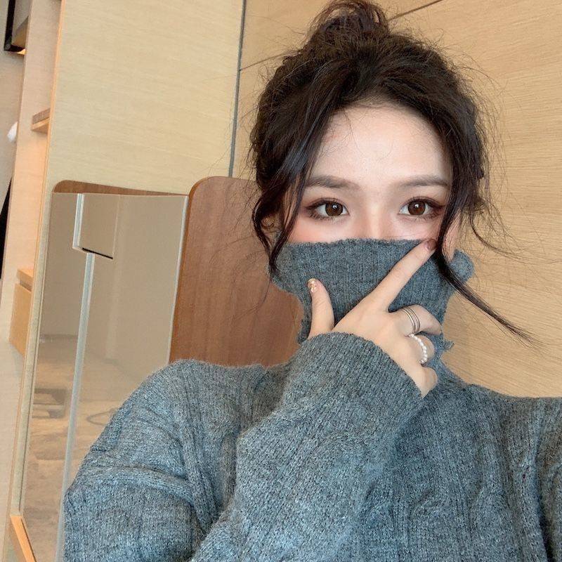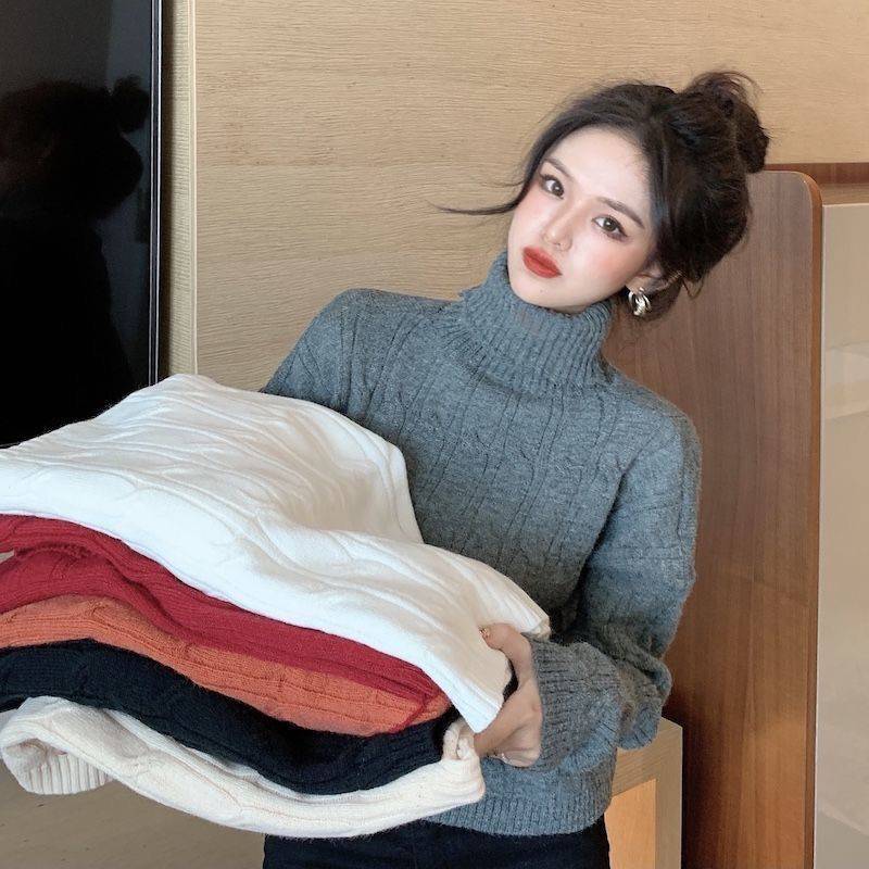 韓国ファッション裹起毛 長袖 ハイネックニットインナー カシミヤタッチ タートルネックセーター レディース百掛け ニットトップス ニット