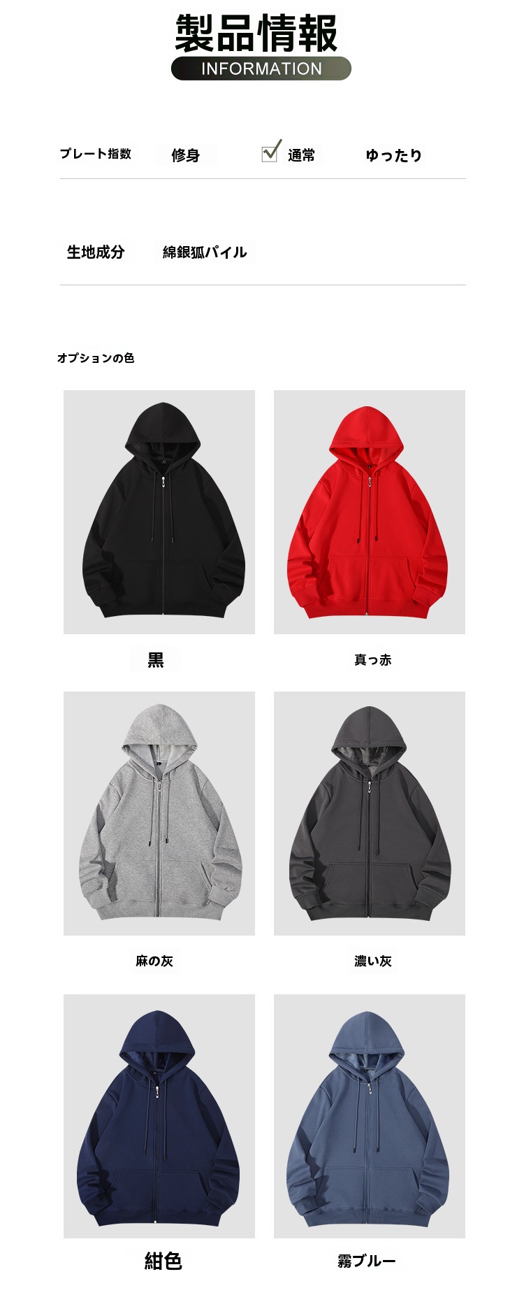 Color: Black/ブラック Red/レッド Dark grey/ダークグレー Ma Grey/グレー Dark Blue/ダークブルー Wu Blue/ブルー Dark Coffee/ダーク コーヒー