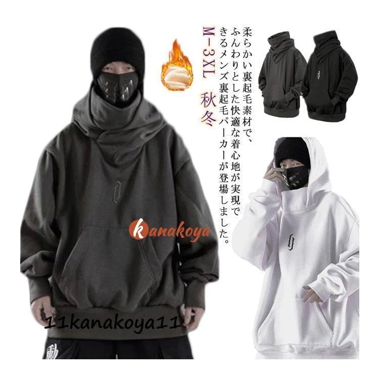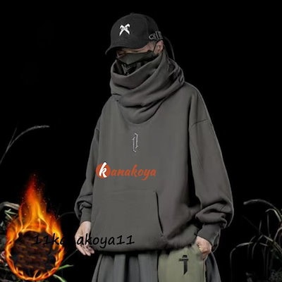 裏起毛 薄手 パーカー メンズ フード付き スウェット タートルネック 大きいサイズ 長袖 プルオーバー 秋冬 ゆったり ストリート系 ポケット