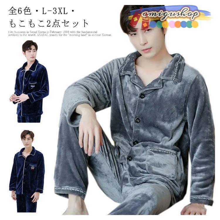 あったか パジャマ モコモコ レディース メンズ 暖かい 上下セット 部屋着 寝巻き ルームウェア 長袖 冬 お揃い もこもこ2点セット メンズパ