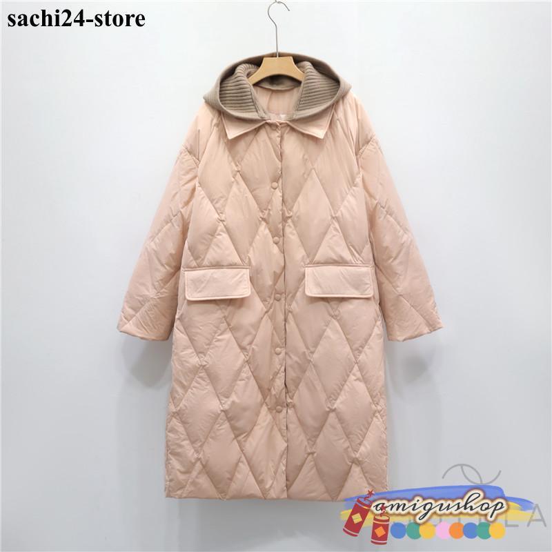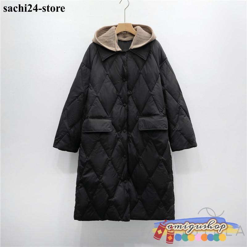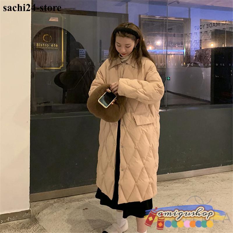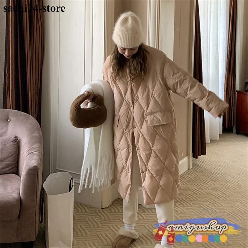 ダウンコートレディース 冬服 ロング丈 折襟 ボタンダウン 無地 秋冬 ダウンジャケット キルティングダウン 厚手 膝丈 ゆったり 暖かい 保温 防寒 羽織り