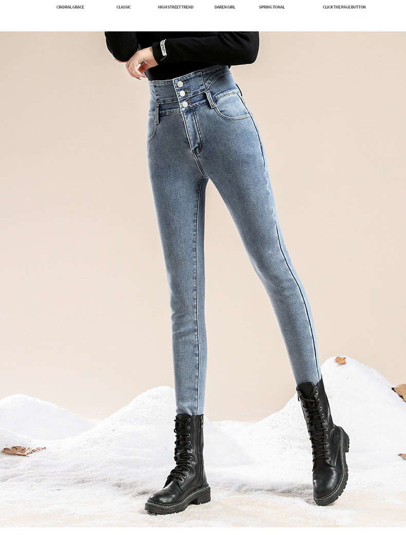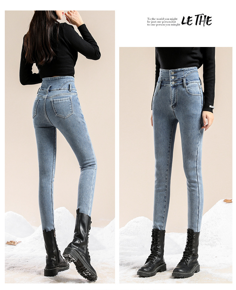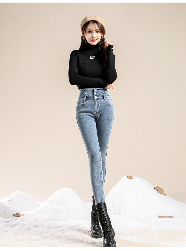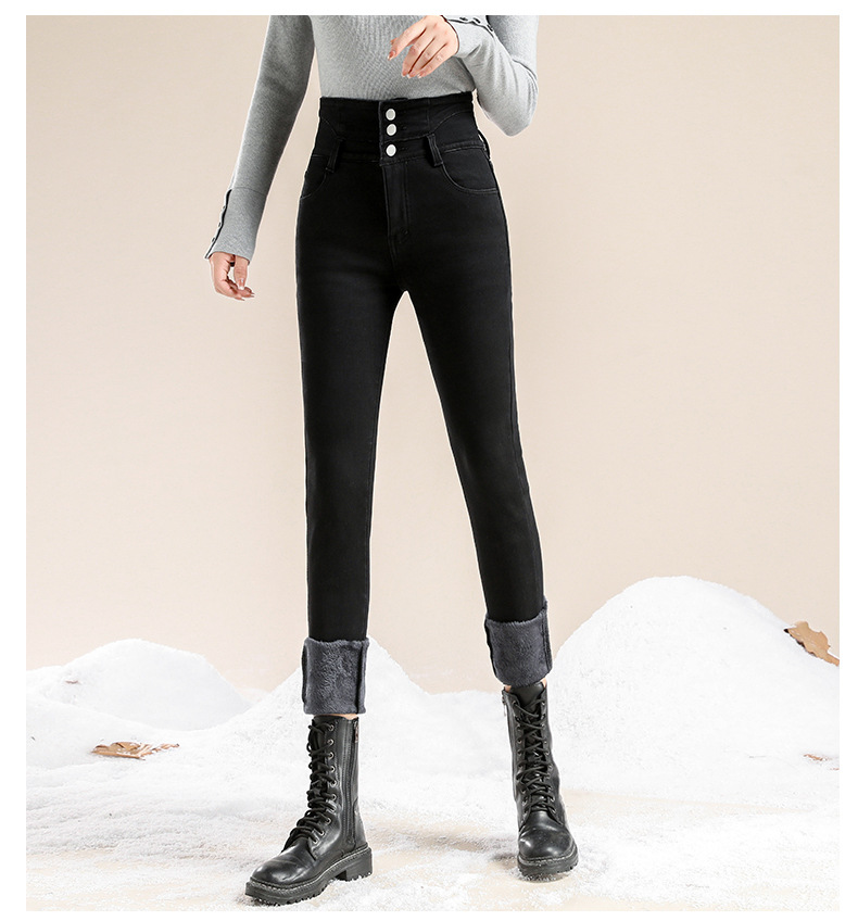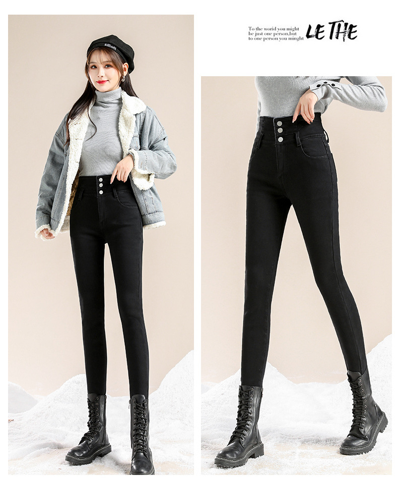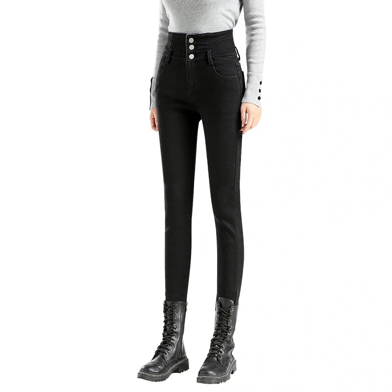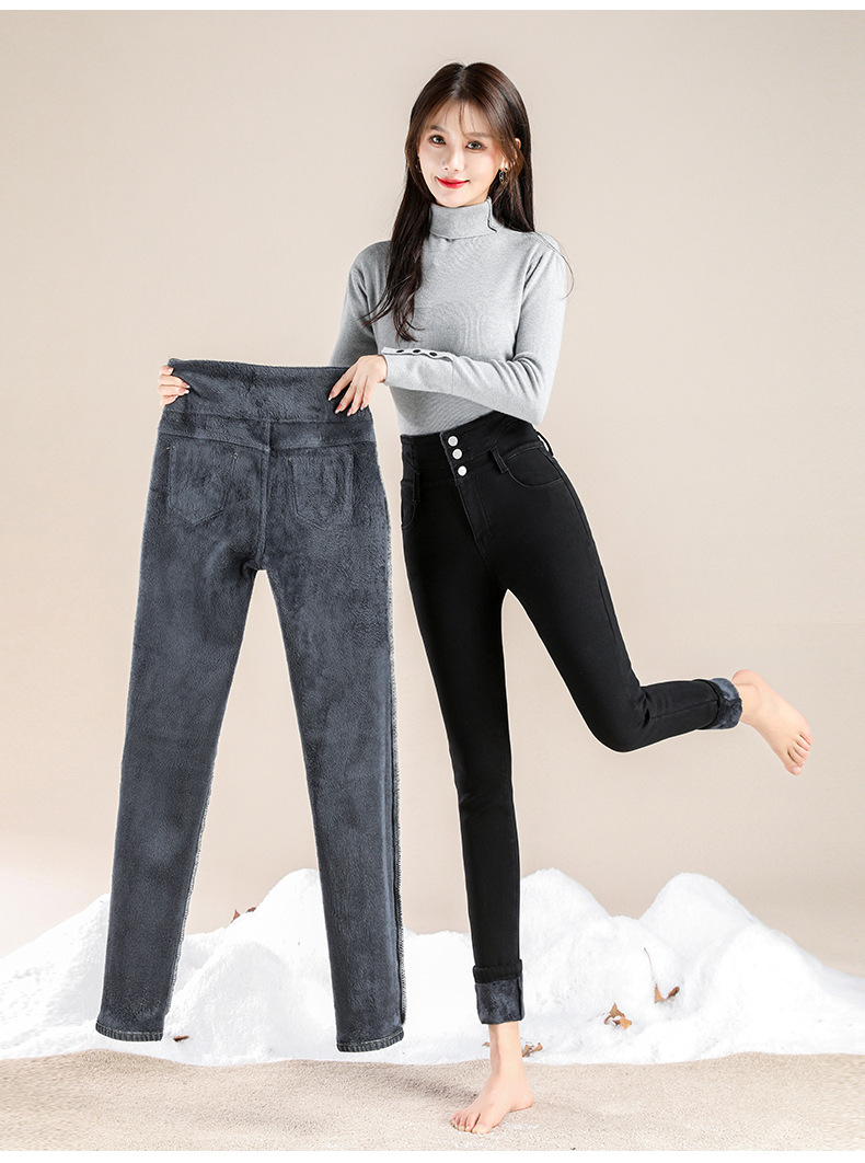 かっこいい スラックスパンツスキニーパンツ3段ブレストタイト 裏起毛パンツレディース韓国ファッションスリム着痩せ小柄ハイウェスト秋冬