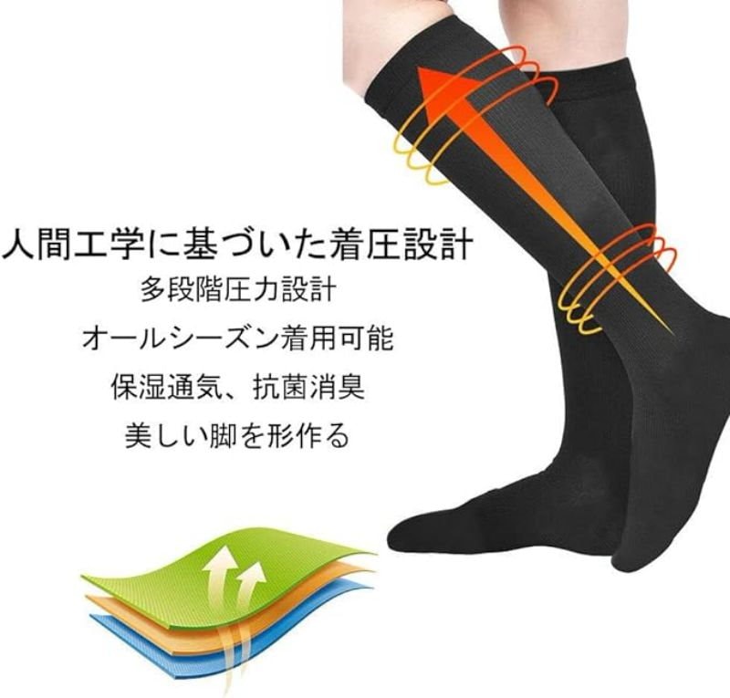着圧ソックス メンズハイソックス 3足組 圧着ソックス 加圧ソックス スポーツソックス 加圧 段階着圧 弾性ストッキング 男性用 スポーツ