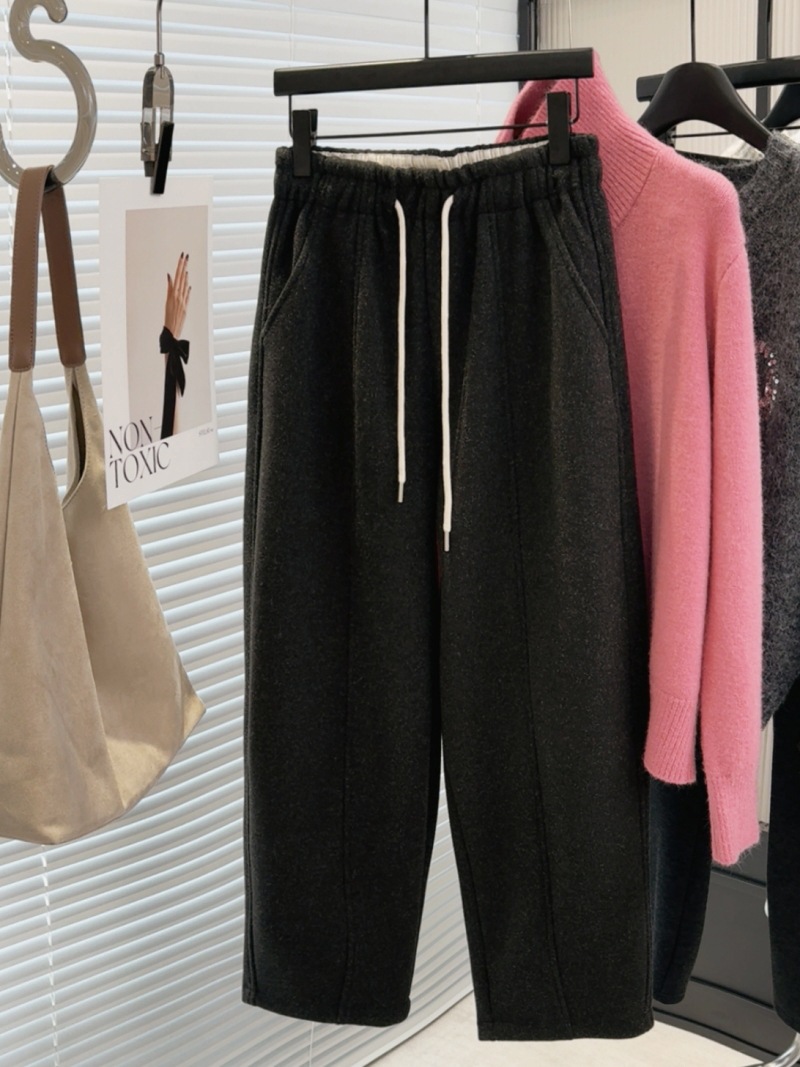 ハーレムズボンの女性秋冬のゆったりとしたカジュアルパンツの灰色の毛のズボンの垂れ下がった感じのウールの円錐形のズボン ロングパンツ
