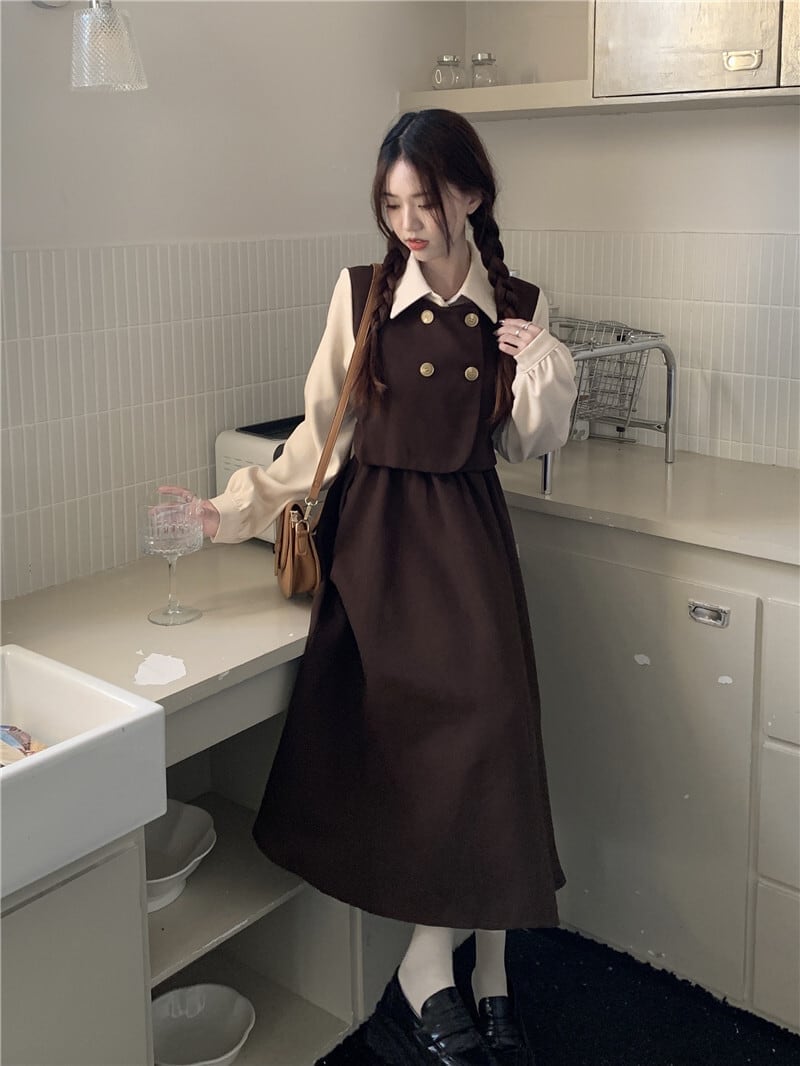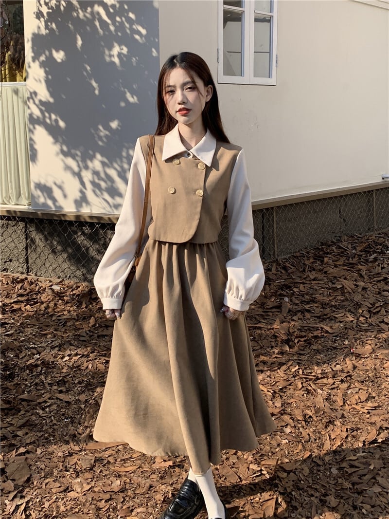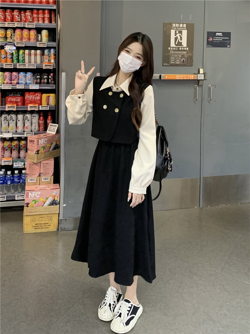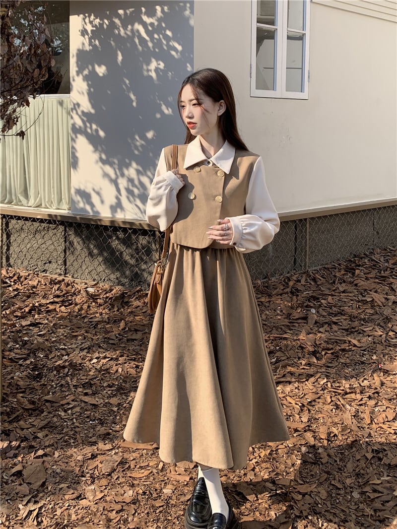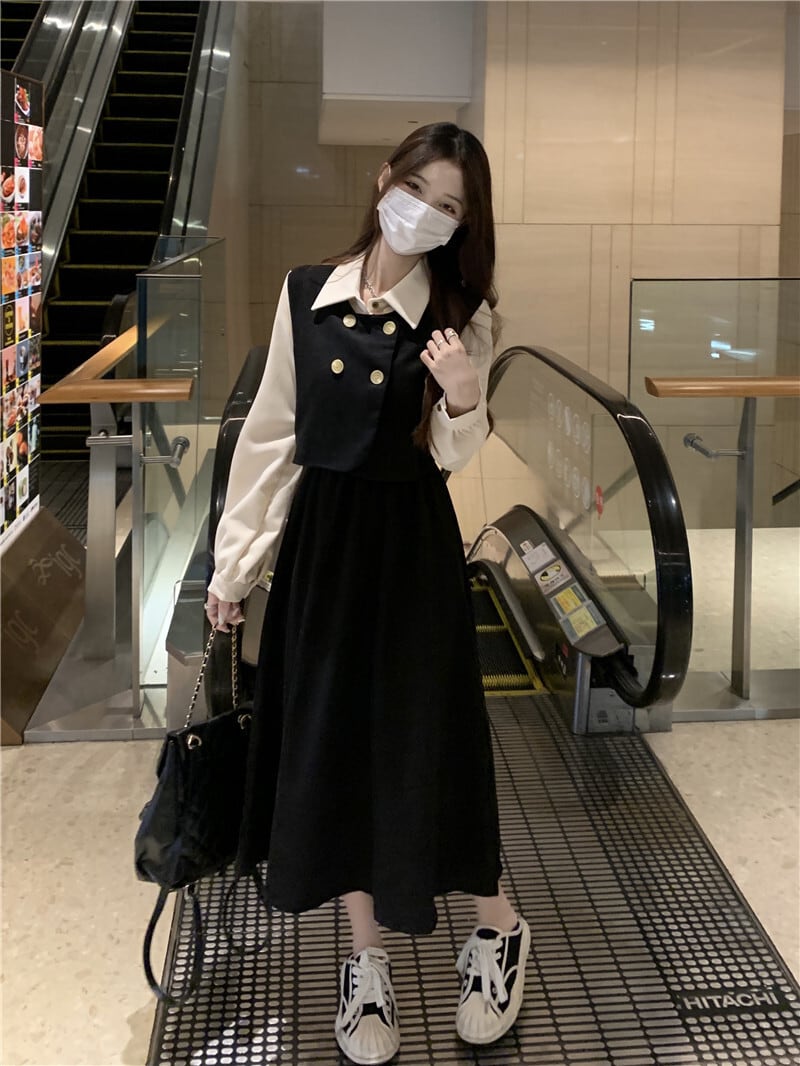 クラシカルワンピース ワンピ 長袖 Aライン トレンド シンプル レトロ クラシカル 大人可愛い 韓国ファッション その他 ワンピース ドレス