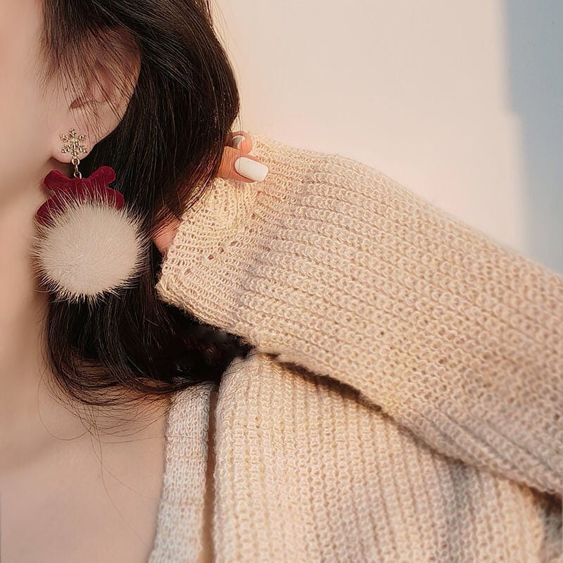クリスマス ポンポン 可愛い ペア 小物 レディース ピアスorイヤリング イヤリング