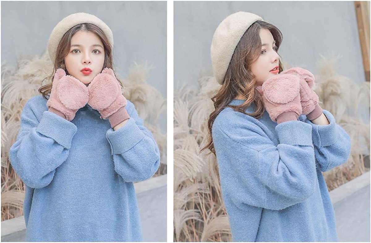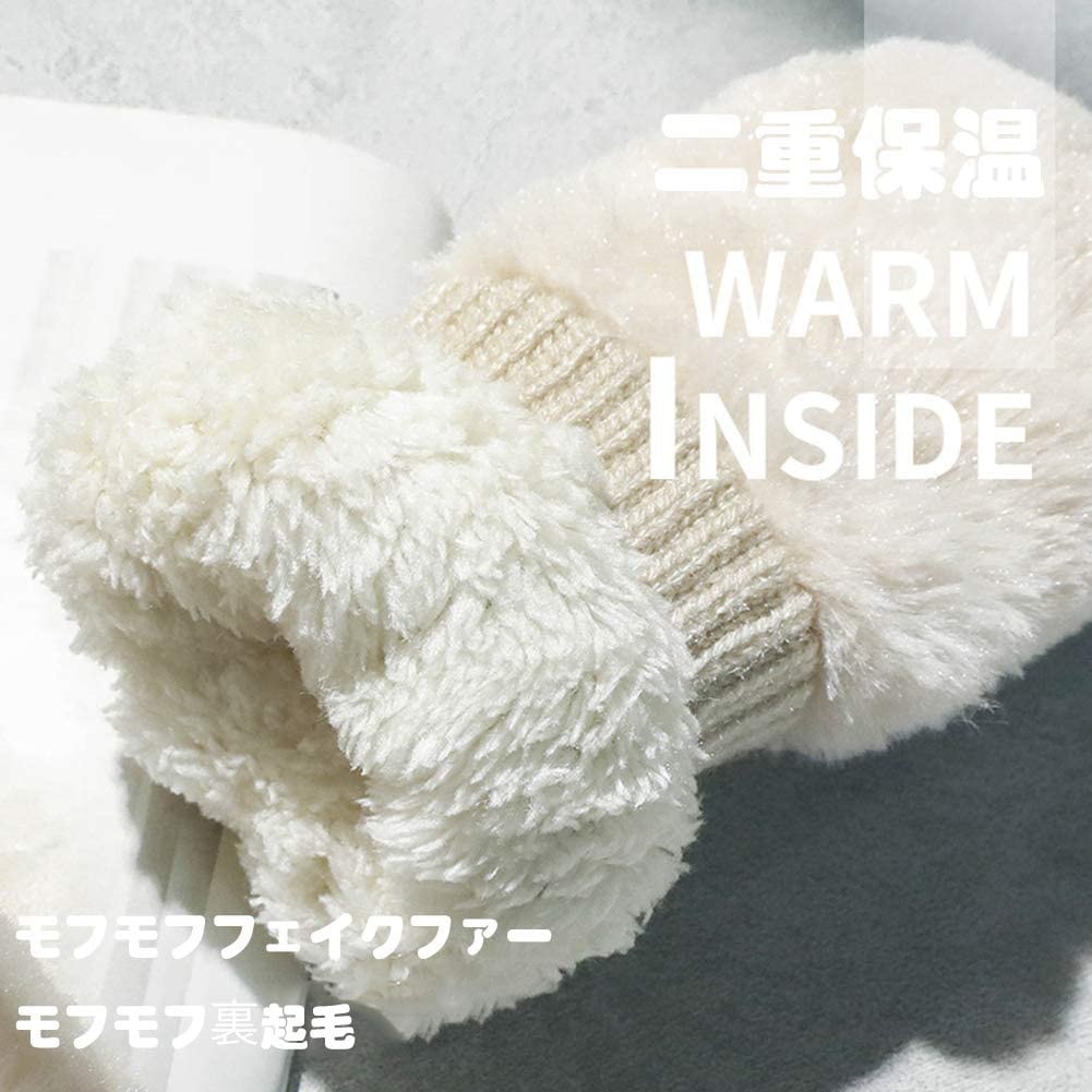 手袋 ミトン&指なし2way ー1010℃ 二重裏ボア あったか2 折りたたみフード手袋 防風ニット 紐付き 厚手グローブ エコ フェイクファー かわいいラビット 手袋レディース 4色