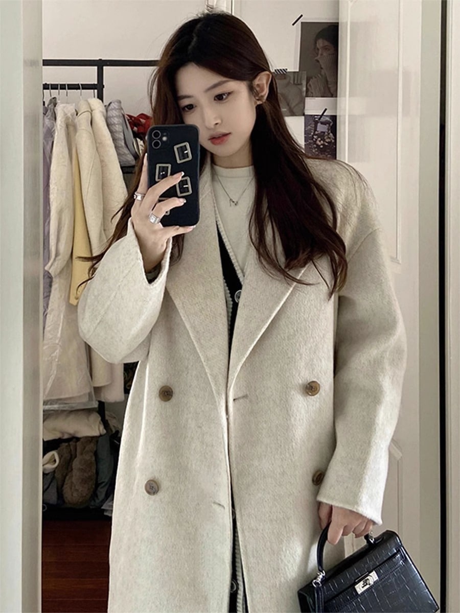 新作 カシミヤ & ウール ノーカラー コート ウールコート カシミア カシミヤ ウール ロングコート ノーカラーコート ドロップショルダー アウター レディース 高 品 質大人っばチエスタ一コ一ト