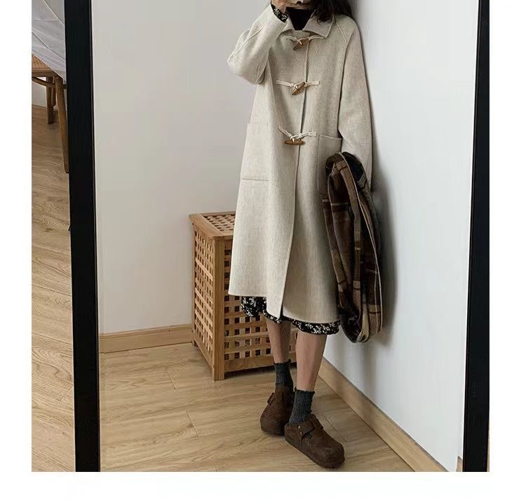 新作 可愛い カシミヤ & ウール ノーカラー コート ウールコート カシミア カシミヤ ウール ロングコート ノーカラーコート ドロップショルダー アウター レディース 大人っばチエスタ一コ一ト