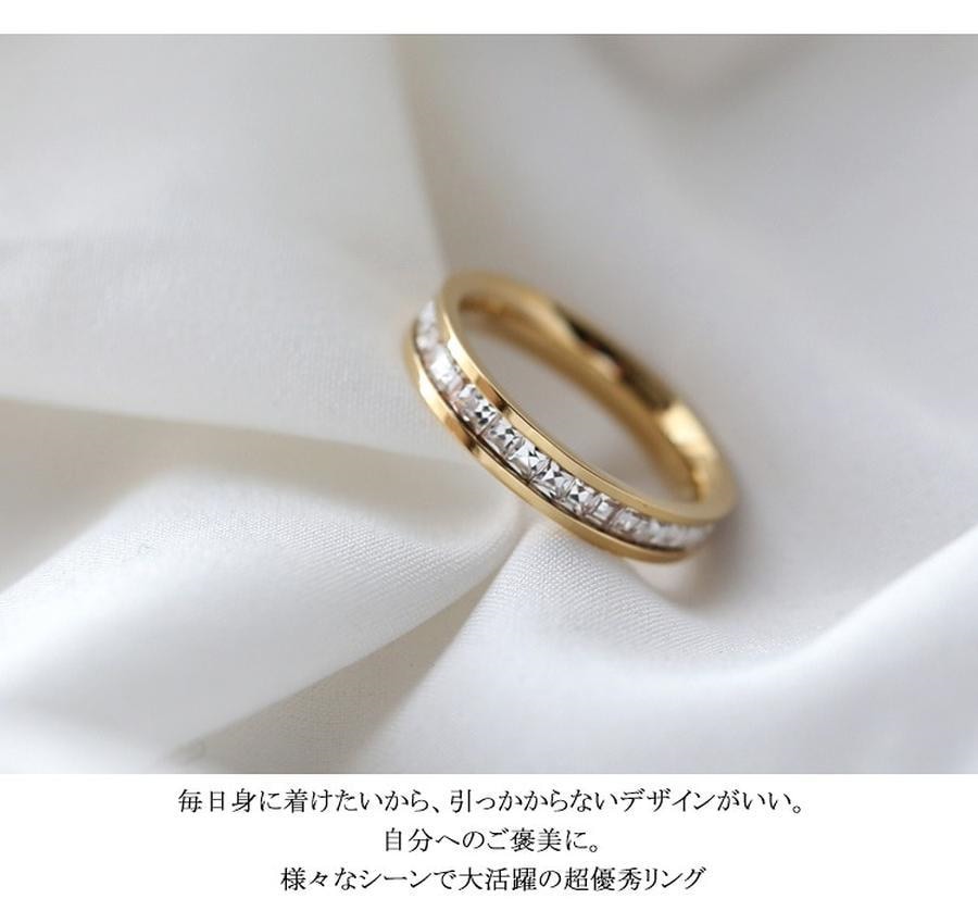 プリンセスカットフルエタニティ ステンレス リングシングル フルエタニティリング 大人可愛い 上品 デイリー 安心 上品 金属アレルギー 結婚式 プレゼント パーティー ジュエリー アク