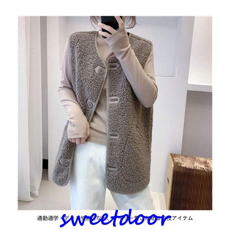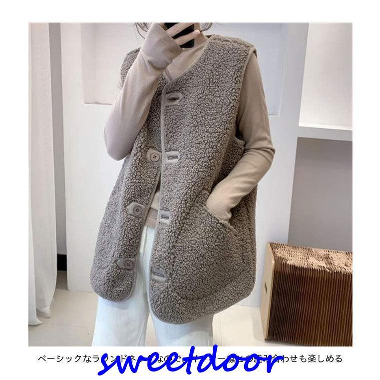 フリースベスト 冬 レディース ベスト 厚手 前あき ジレ モコモコ 暖かい ジレベスト 通勤 アウター ノースリーブ 春秋 チョッキ レトロ