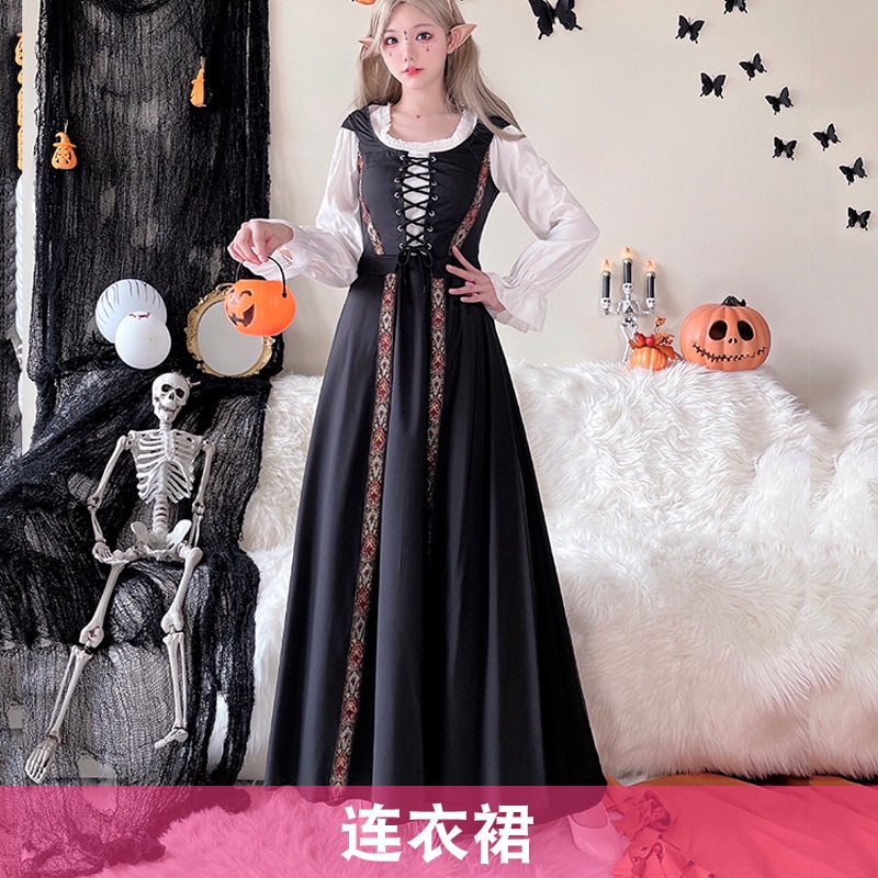 コスプレ 万聖節 ロリータ 韓国ファッション ハロウィンコスチューム レトロ 宮殿風 魔女ドレス ロングスカート 中世文学 ヨーロッパ 牧歌風