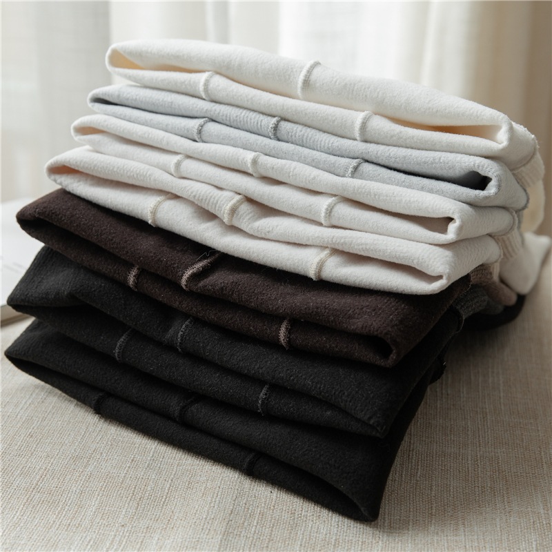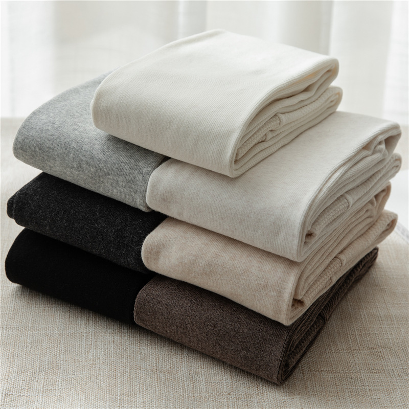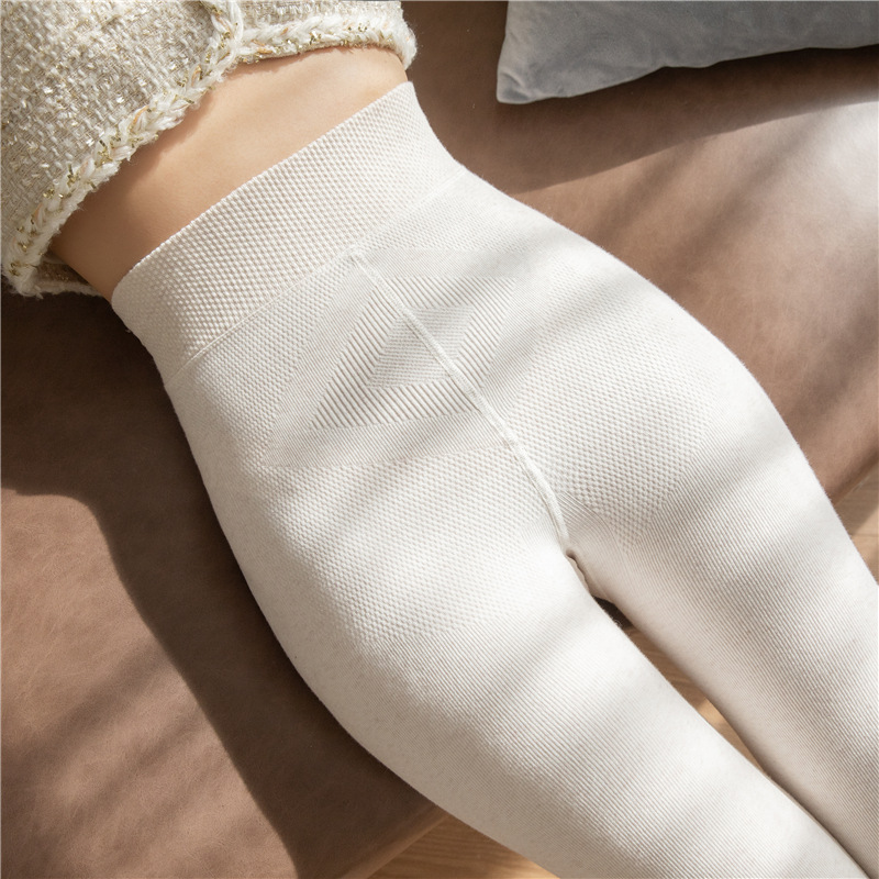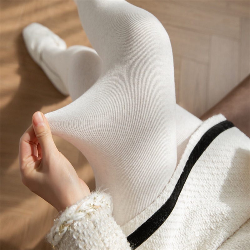 冬支度タイツ ニット縦縞ボトムス女性秋冬パッド入り厚手ハイウエストミルク白パンスト レギンス