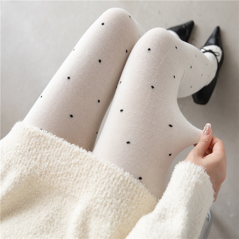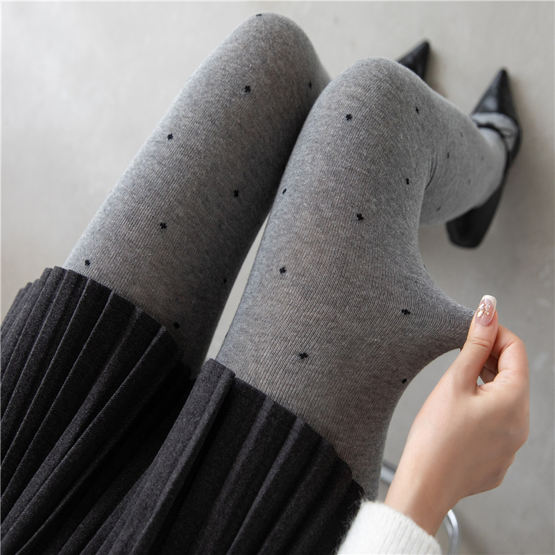冬支度タイツ ヴィンテージ水玉グレーパンスト女性秋冬モデル水玉ジャガードボトムソックス厚く暖かい外底パンツ レギンス