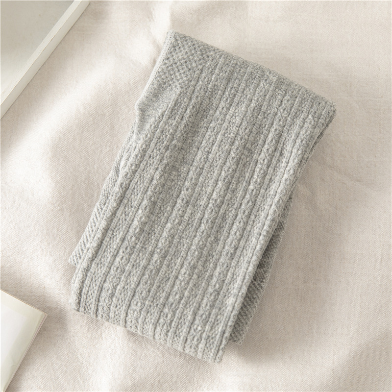 冬支度タイツ パッド入りグレーボトムス秋冬ニットツイストバーチカルストライプパッド入りパンティストッキング暖かいボトムソックス レギンス