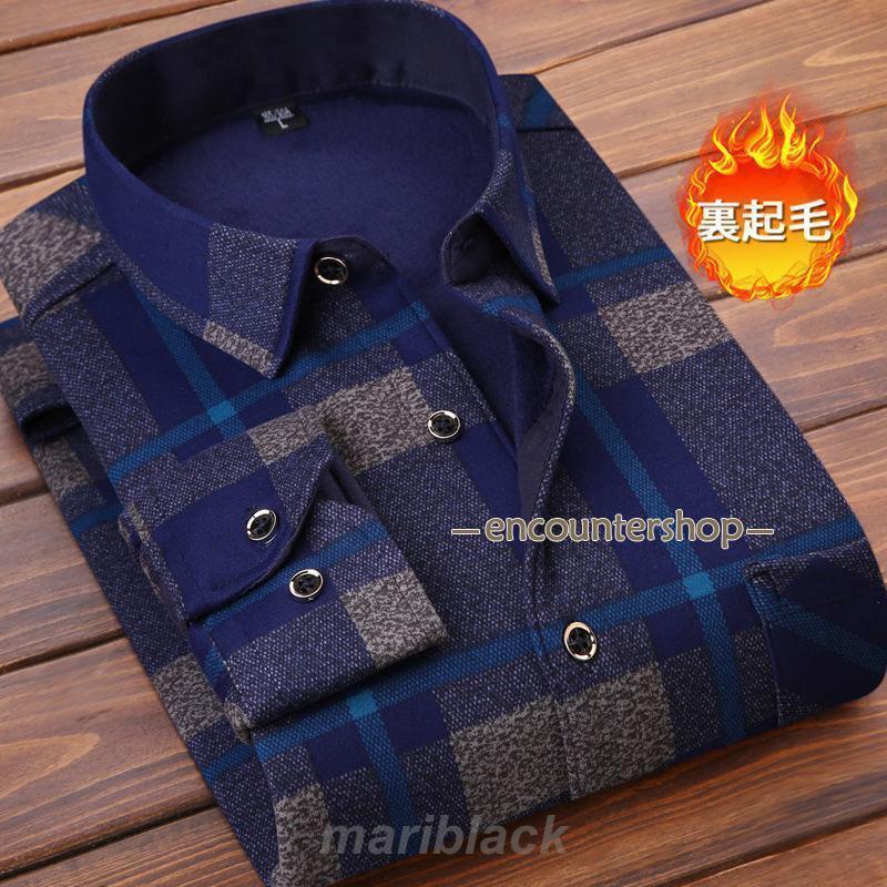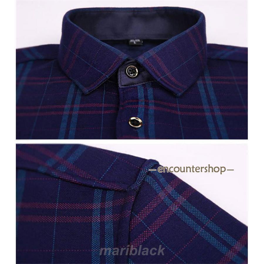 シャツ 裏起毛 防寒 メンズ チェック 長袖 ワイシャツ 秋冬 冬服 ビジネスシャツ 開襟 裏ボア 暖かい 厚手 トップス カジュアルシャツ 通勤通学