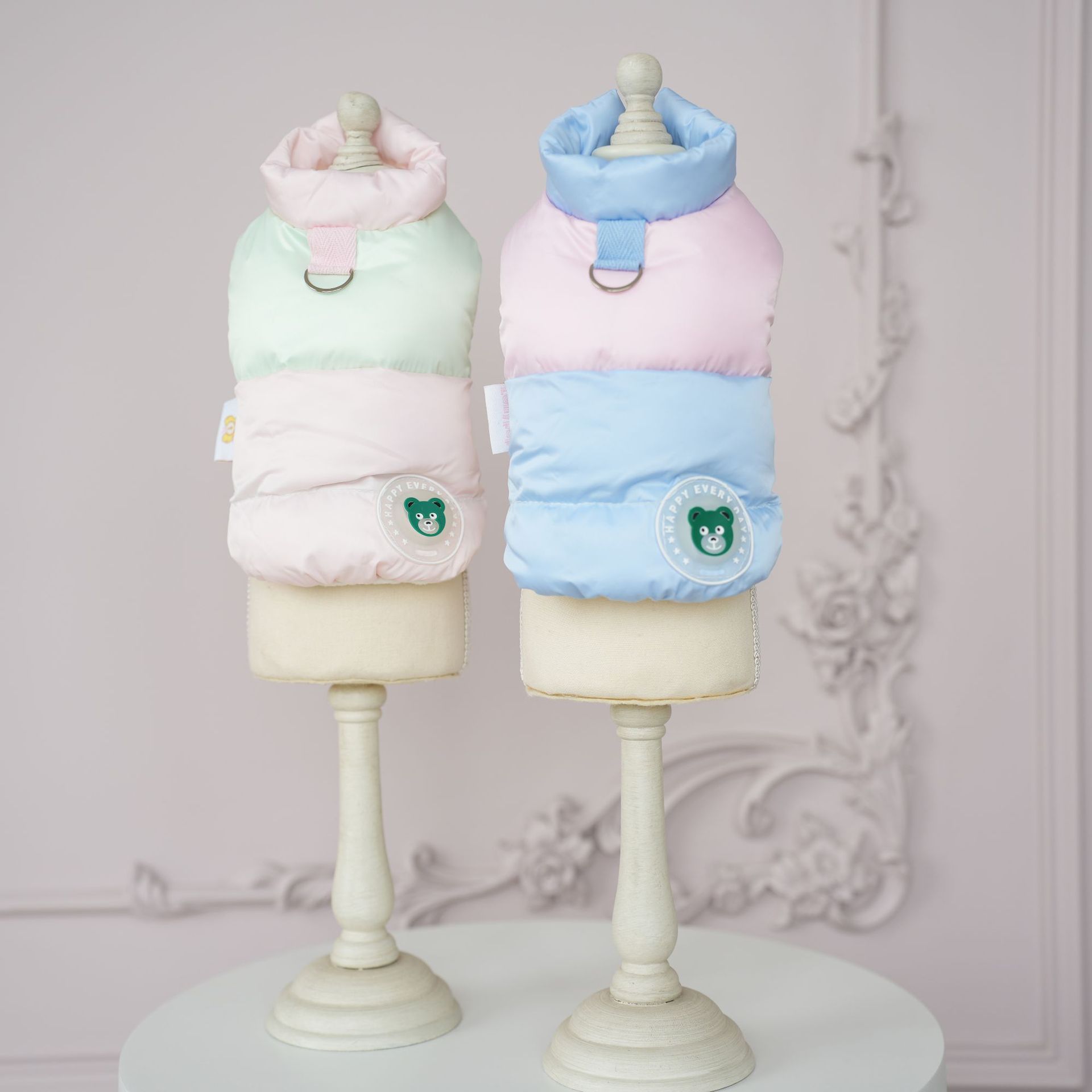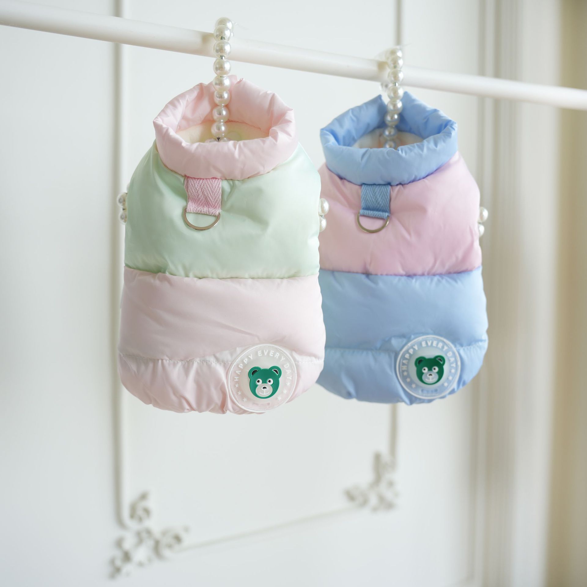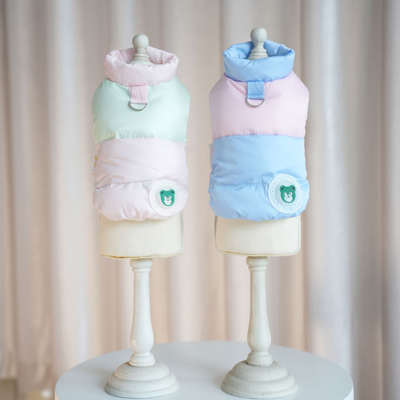 ペット犬服秋冬新作マカロンスプライシング手詰め防水綿コート猫二本足服 防寒着