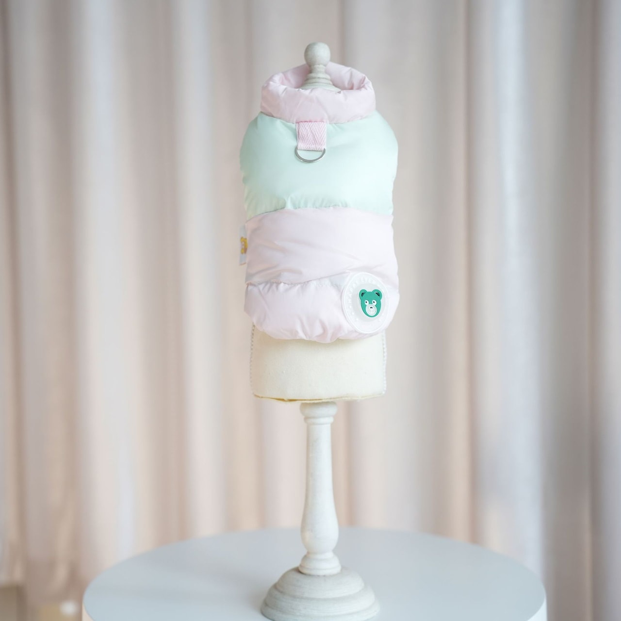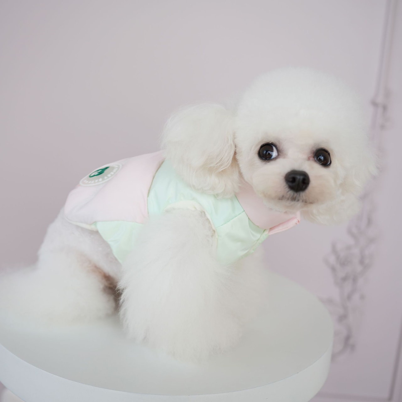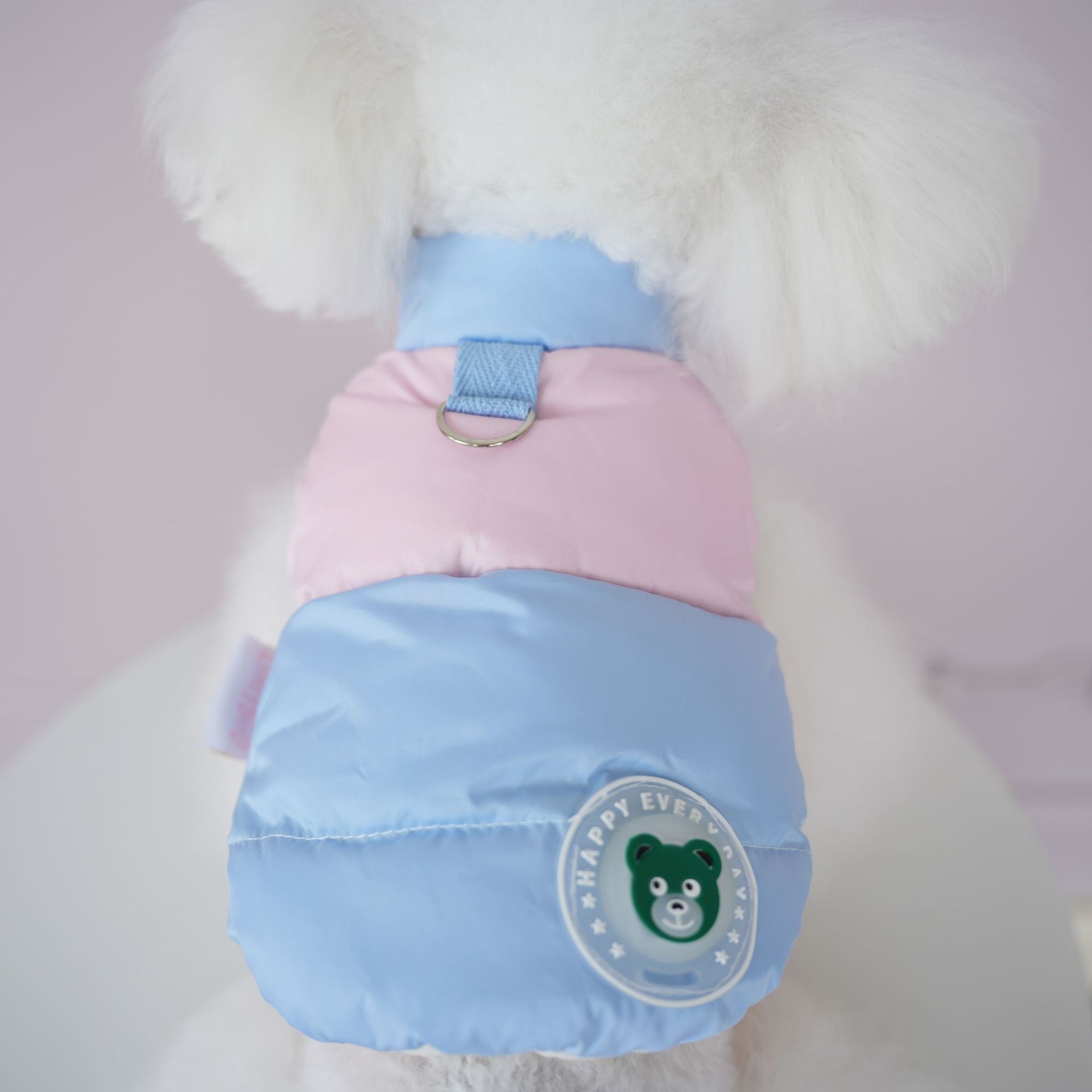 ペット犬服秋冬新作マカロンスプライシング手詰め防水綿コート猫二本足服 防寒着