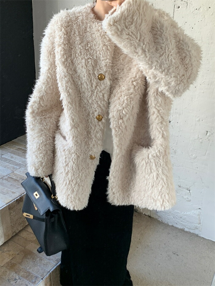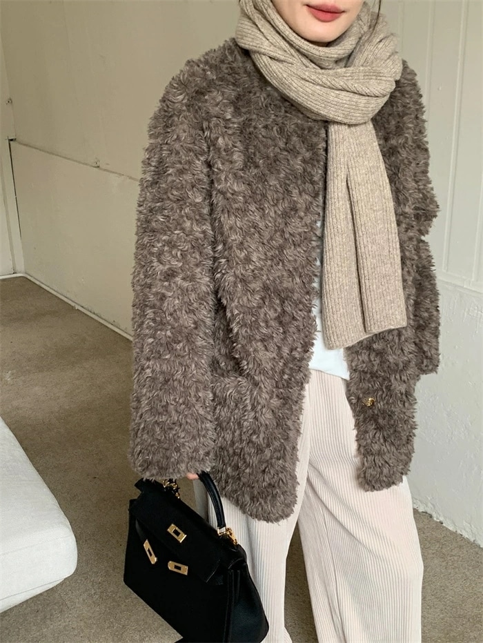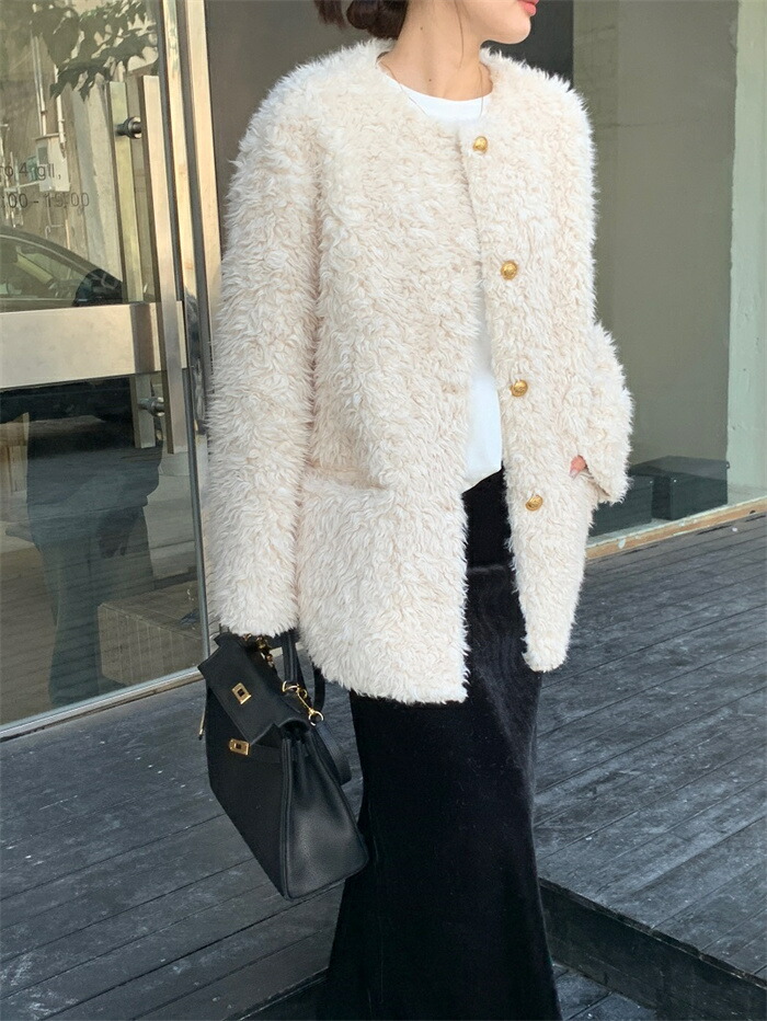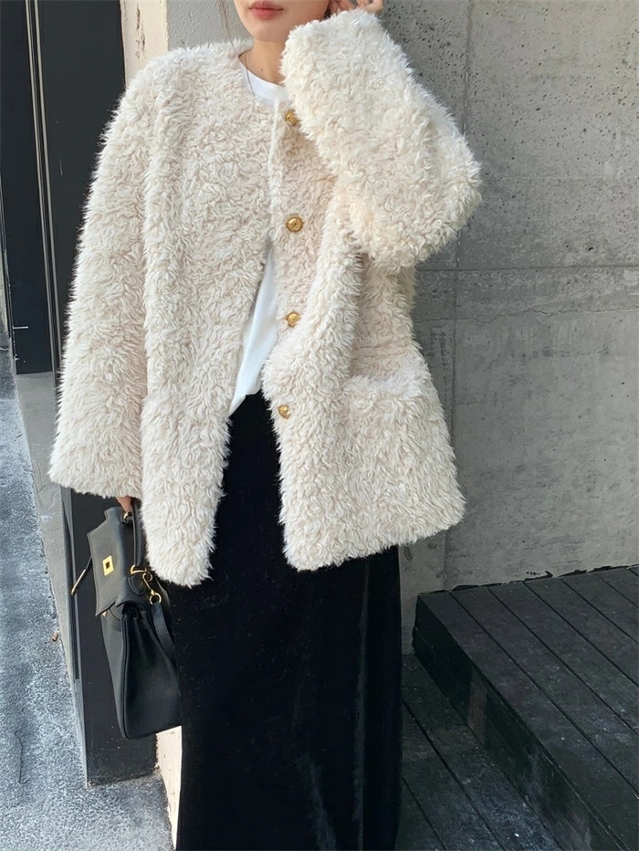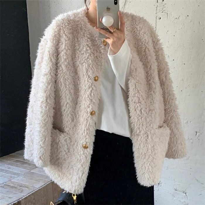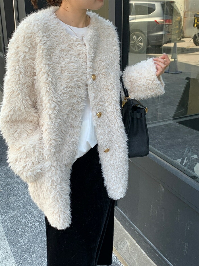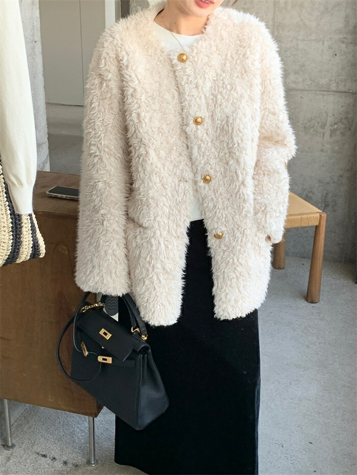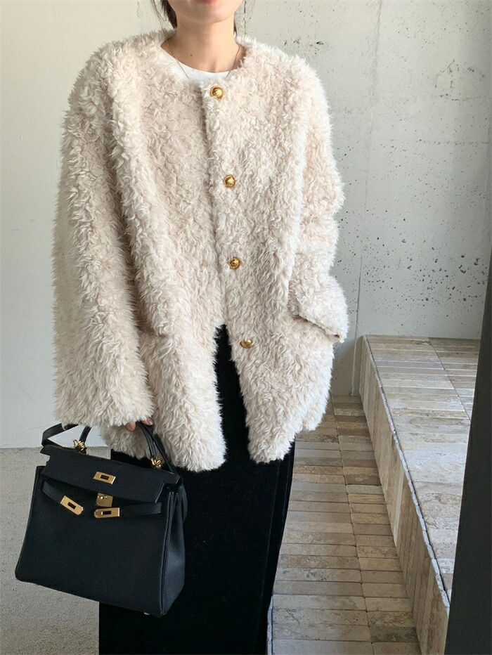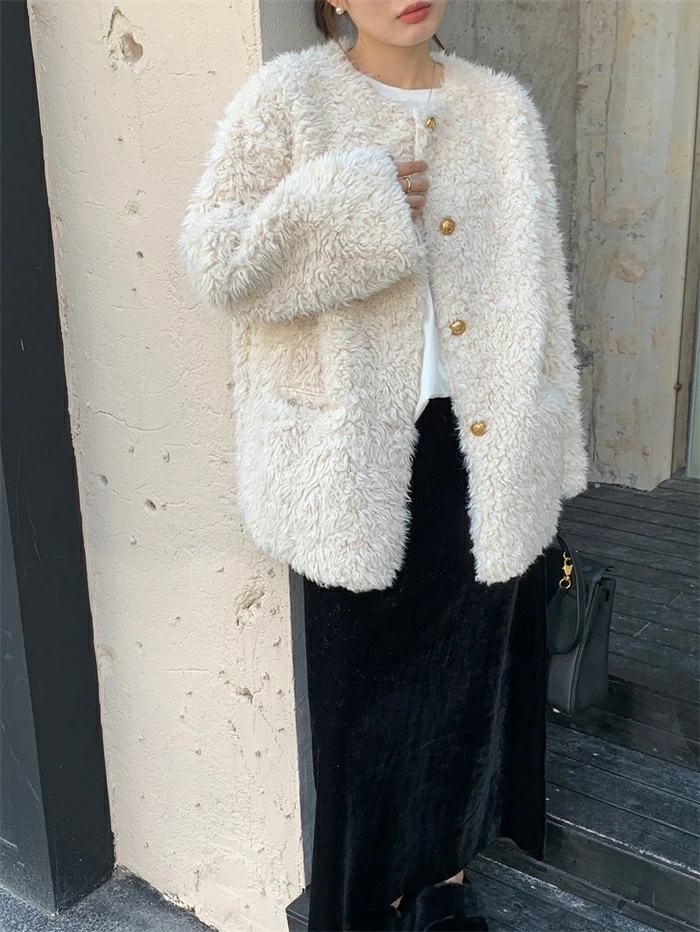 ボアジャケット 冬 ノーカラー ジャケット レディース 秋冬ジャケット ボアコート ボア アウター クルーネック 大きいサイズ 大人 羽織り ゆったり きれいめ 着痩せ カジュアル シンプル 通勤 オ