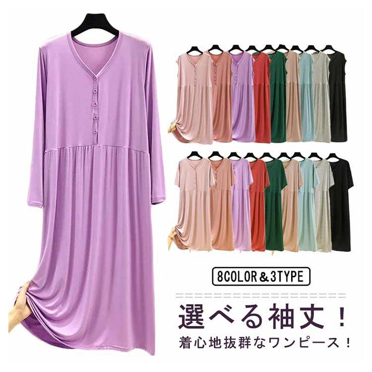 超人気 接触冷感 マタニティ ルームウェア ノースリーブ 長袖 春夏 部屋着 レディース 半袖 秋 ワンピース モダール ロング丈 前開き 授乳 妊婦パジャ