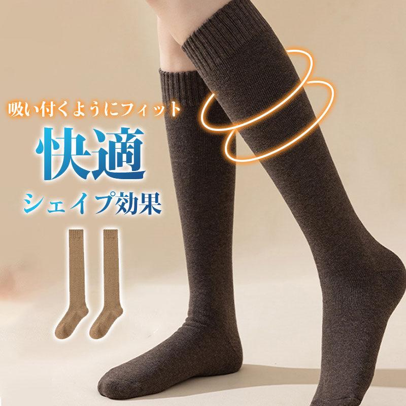 靴下 レディース 綿 ハイソックス スクールソックス 裏起毛 裏毛 シンプル くつした 防寒 無地 暖かい 厚手 冬用