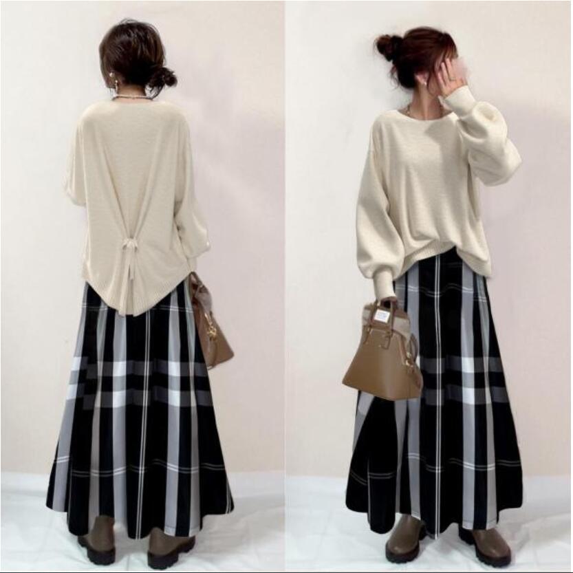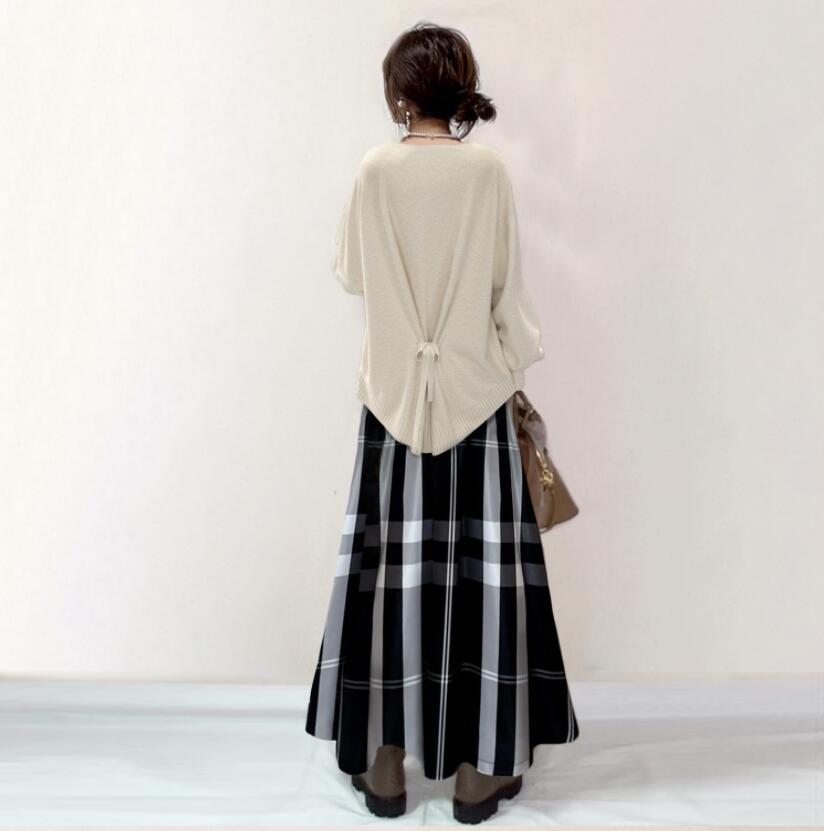 日系 レディース 大きめサイズ セーター+スカート 秋 冬 ニットセットアップ 体型カバー トップス ロングスカート 二点セット 着痩せ 秋冬 百掛け レディースファッション