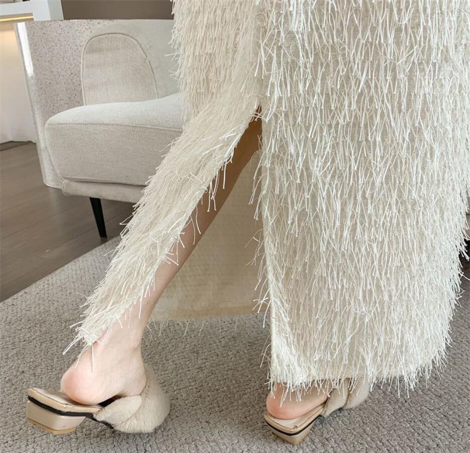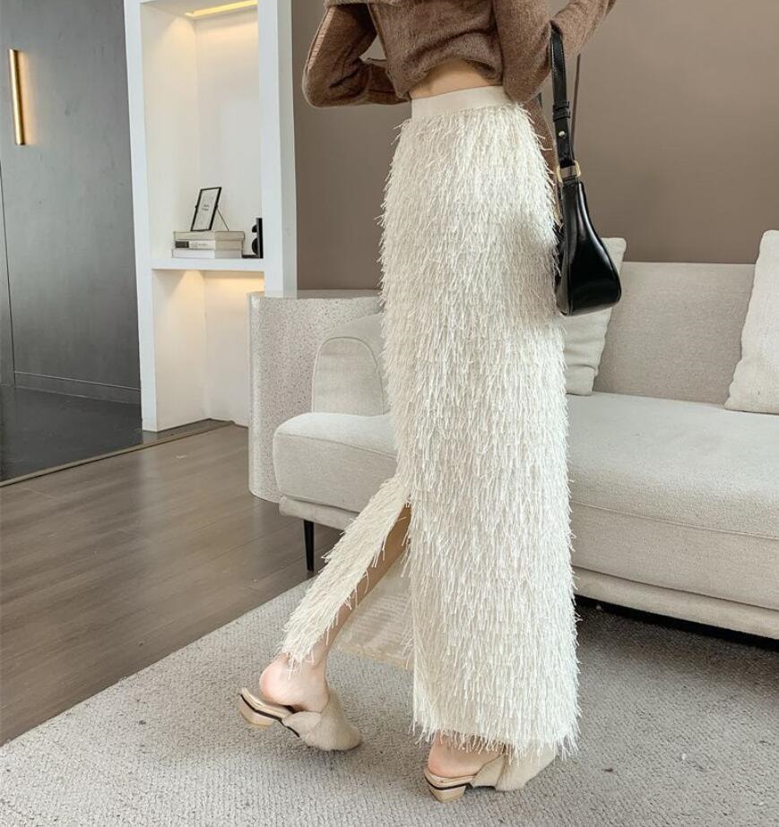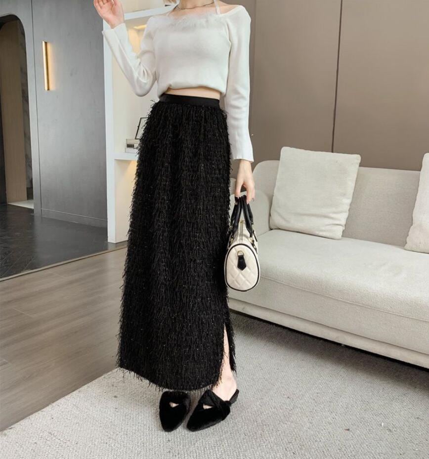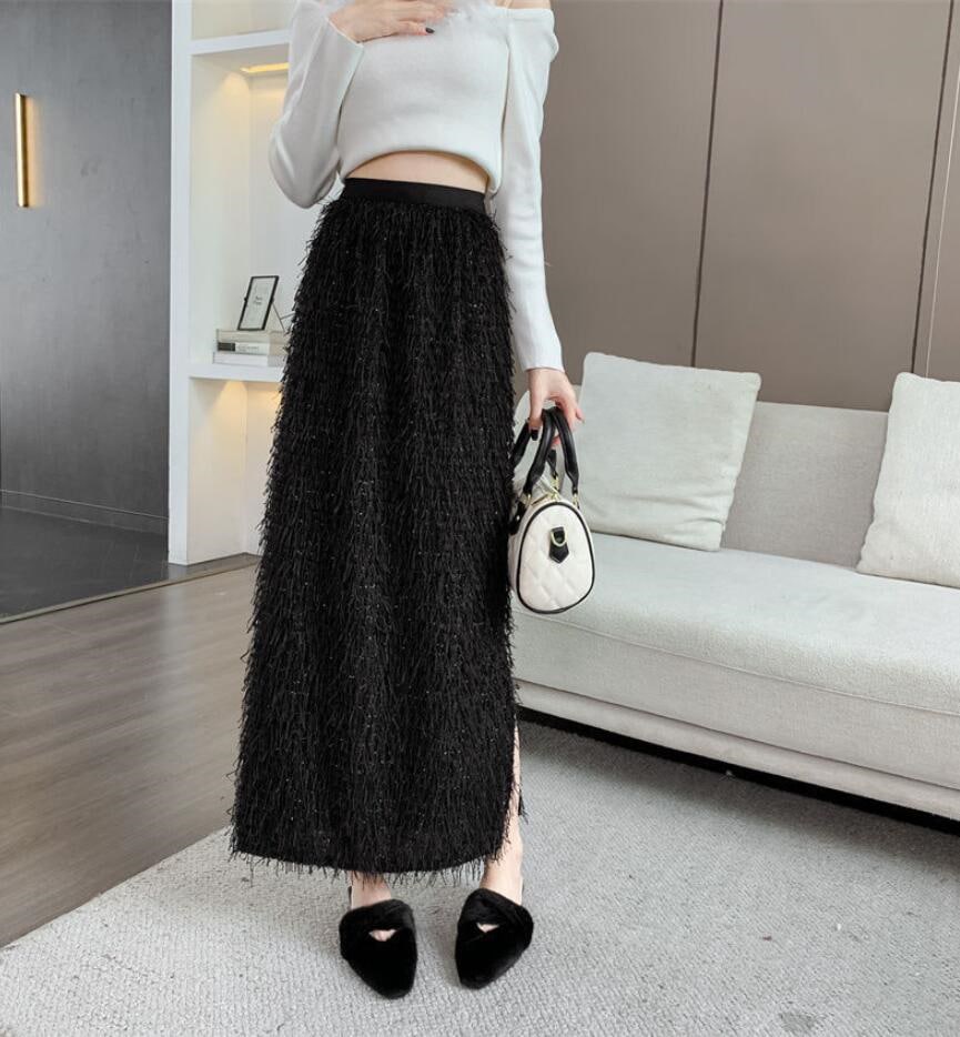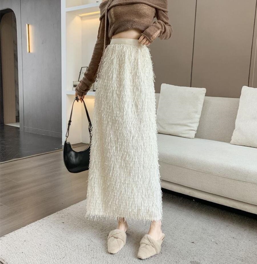 秋冬のギャザーフリンジオーバーサイズ半身スカートレトロなストレートミディアムスカートコーデ ミディアムスカート