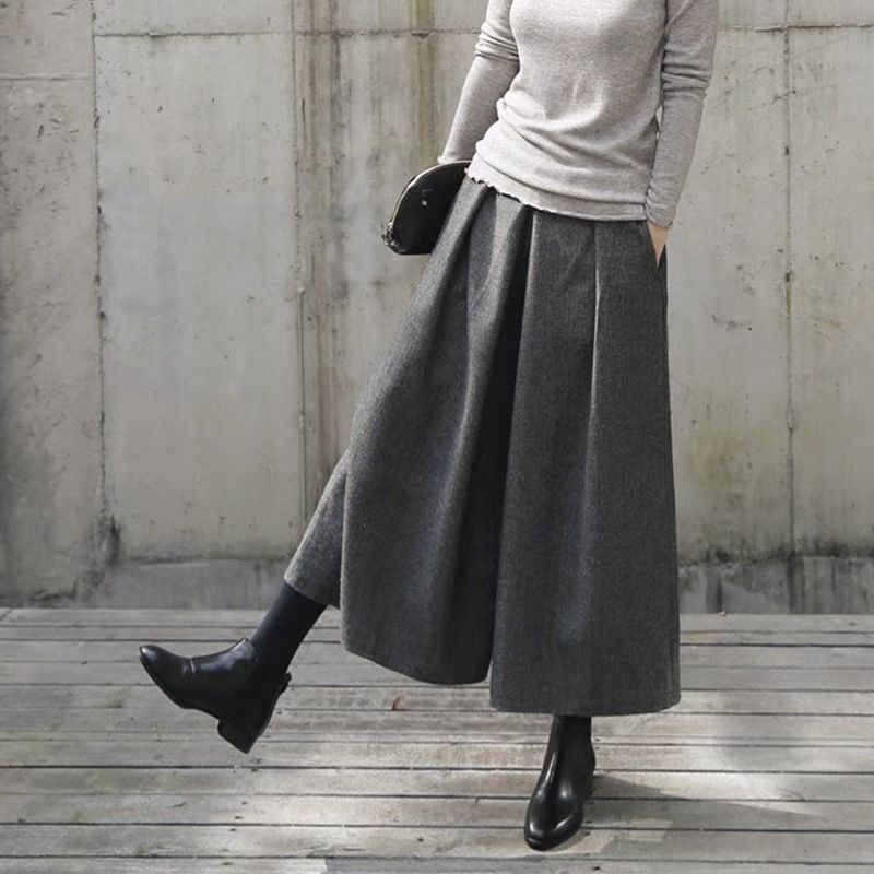 新品 ガウチョパンツ 冬 フレアパンツ スカーチョ 秋冬 ワイドパンツ レディース キュロットパンツ タック スカンツ ウール 防寒 保温 イージーパンツ 大きいサイズ 韓ファッション